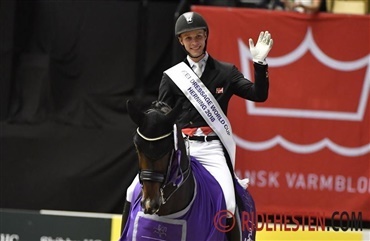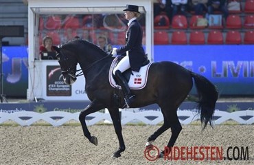 Selv om der ikke er nogen danske ryttere i klassen, så gemmer der sig bag Charlotte Jorsts amerikanske nationalitet en dansker. Hun viste i den indledende klasse super ridning og masser af positiv energi og overskud samt glæde og stolthed over sin hest. Hun vil uden tvivl med sine dejlige hingst Vitalis høste stort bifald fra publium i dag.