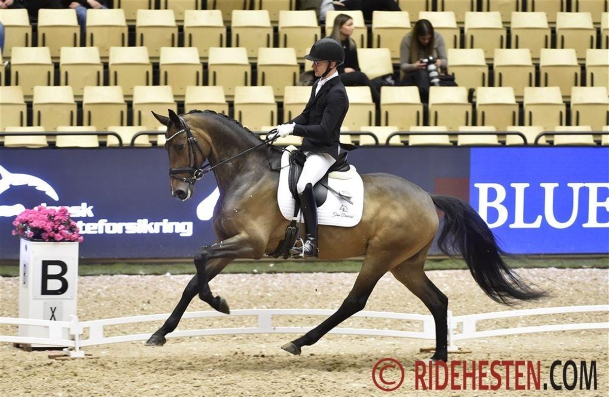 Den brune hingst, Rally von Rosing e. Revolution/ Tailormade Temptation (opdr. Maria von Rosing), gjorde det også fremragende i dag. Med Simone Blomme Rasmussen scorede den 8 for skridt og 8,5 for både trav, galop, ridelighed og kapacitet, hvilket betød, at de to red sig til en samlet score på 507 point og en foreløbig tredjeplads her på andendagen.