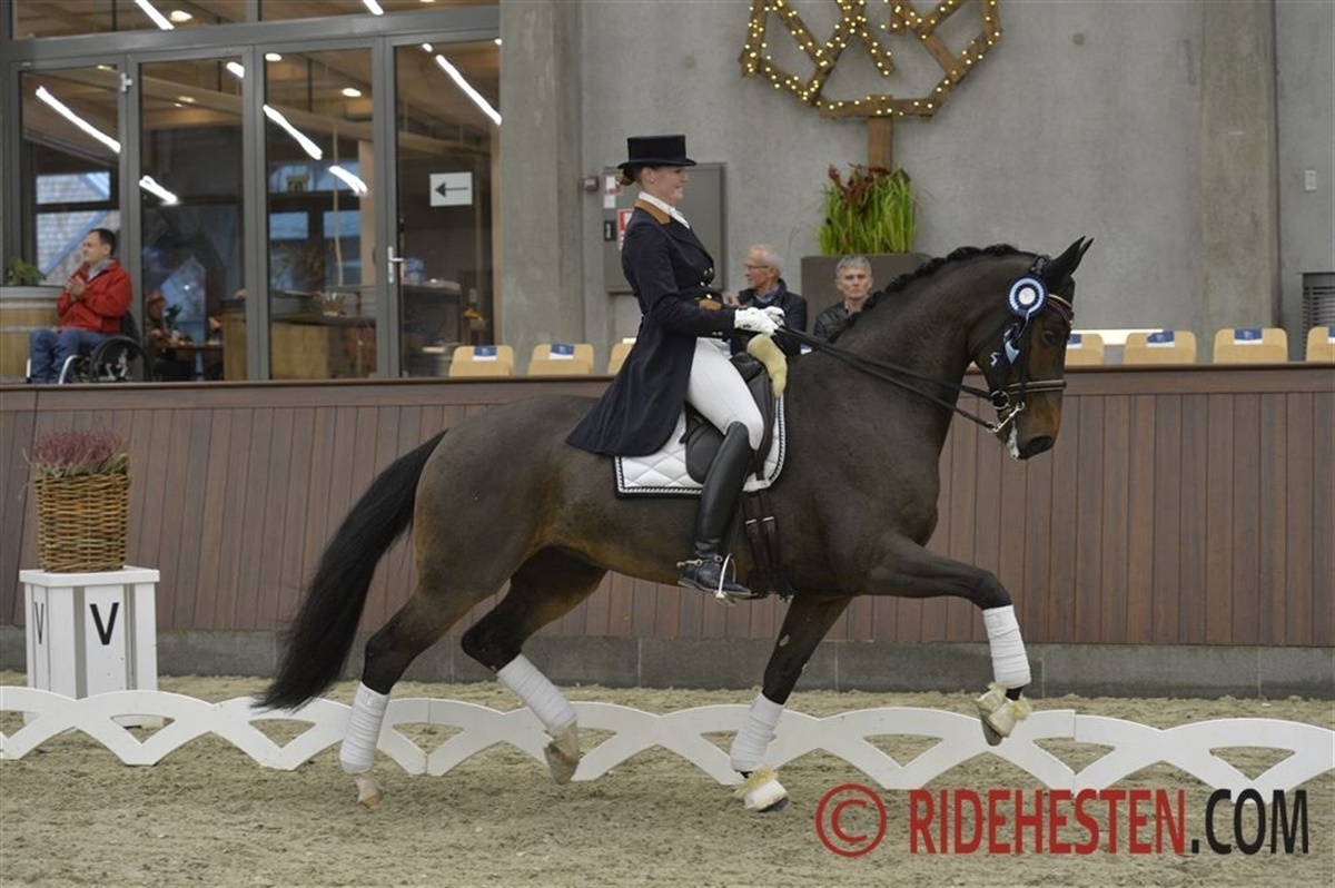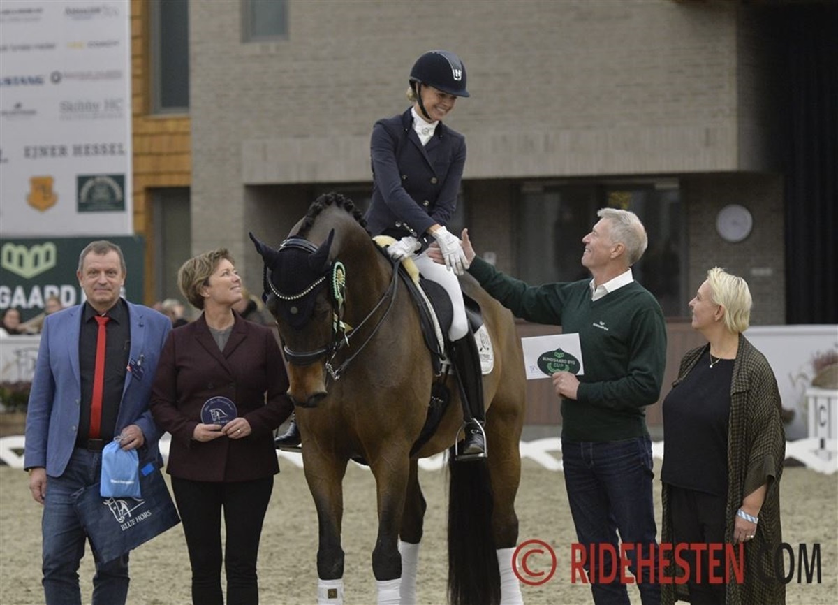 Lisbet Seierskilde Pedersen har selv opdrættet Jonstrupgårdens Cocio e. Desperados, en hest, som ser ud til at kunne blive Lisbets næste partner i den store sport. De er godt på vej, og nu skal hun hjem for at få piaffe/passage arbejdet på plads. I dag viste de et svært program, som stort set lykkedes på nær en enkelt pirouette. Hun sluttede samlet på andenpladsen i Bundgaard Byg Cup.