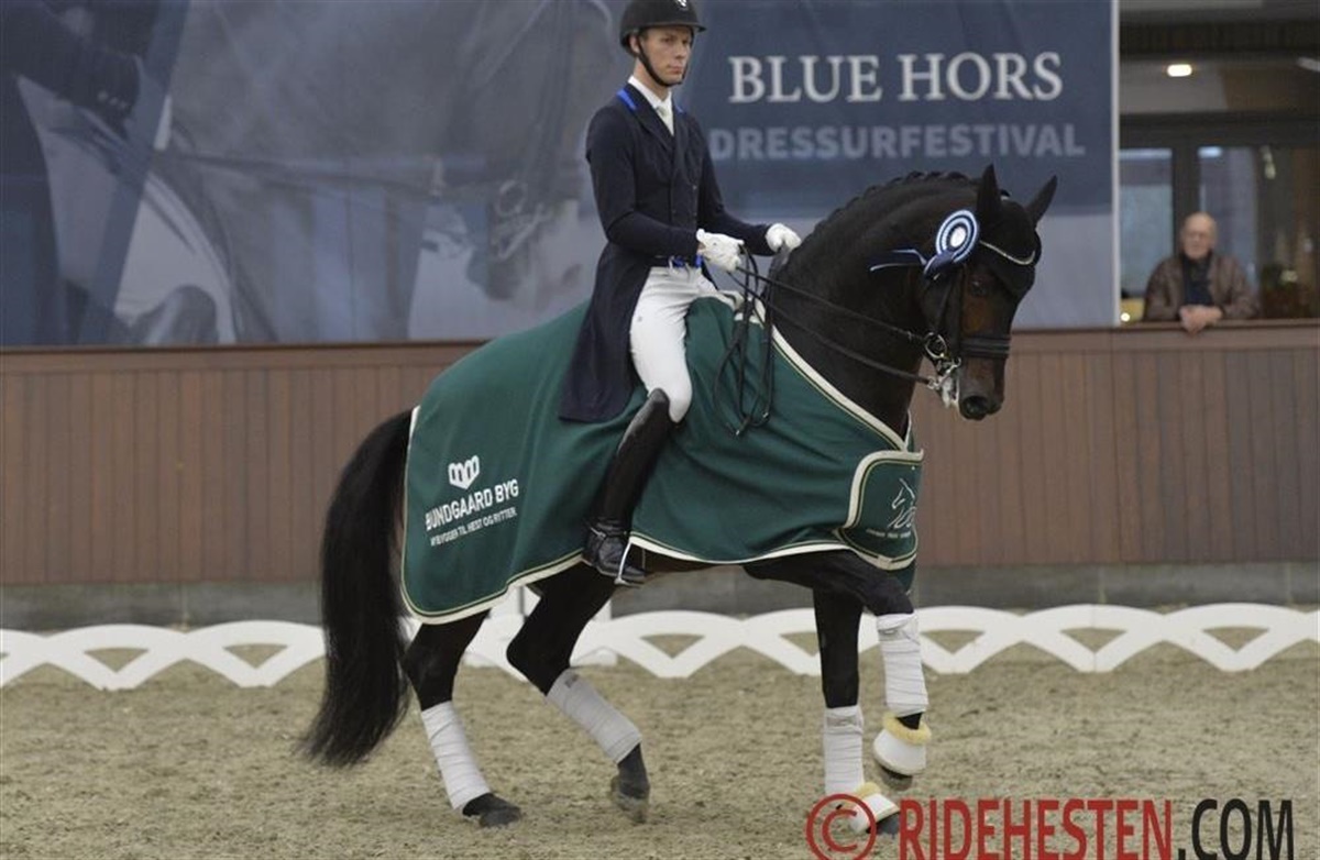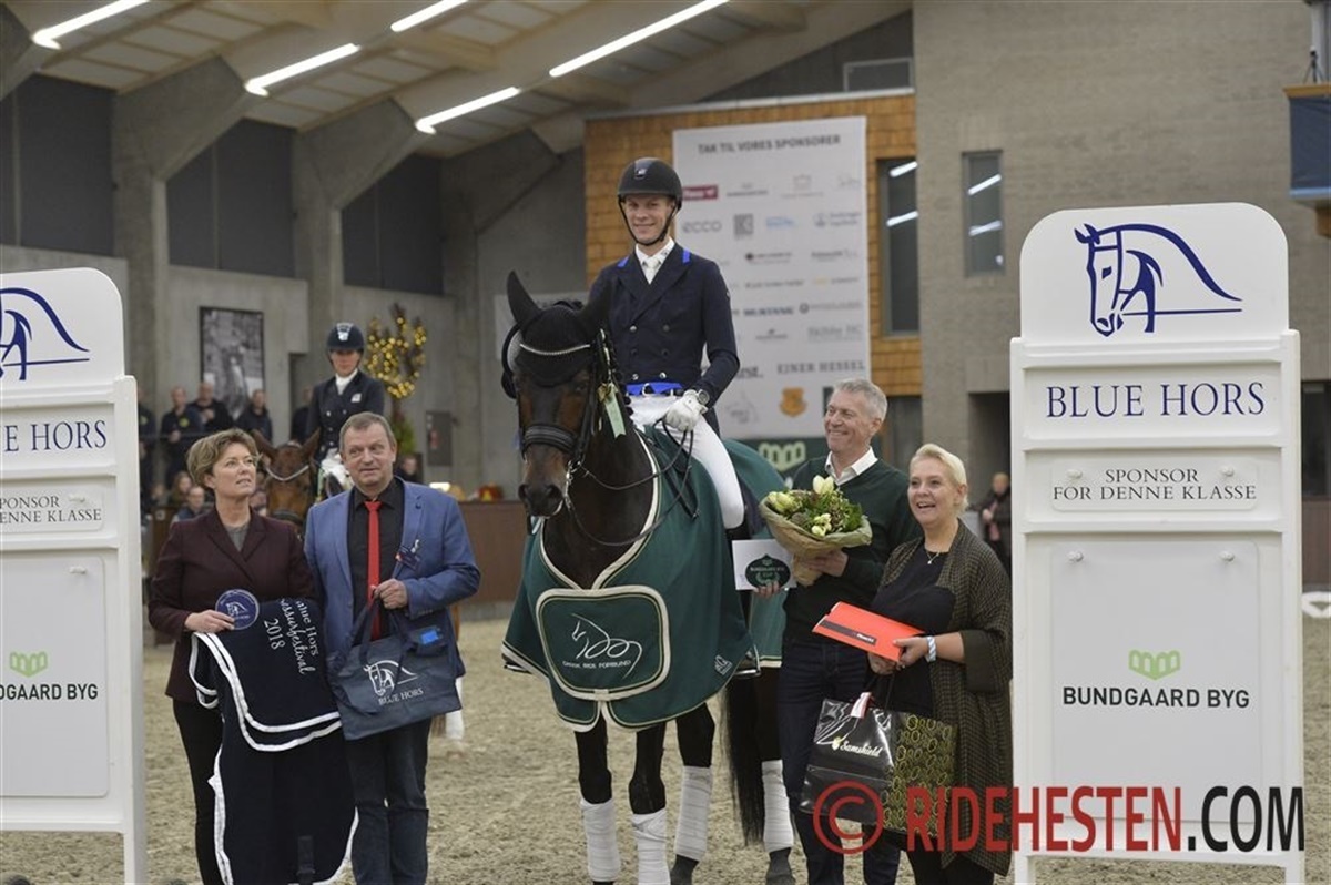 Da Daniel Bachmann Andersen red på banen, som klassens sidste rytter med avlshingsten Blue Hors Zee Me Blue e. Blue Hors Zack/Blue Hors Don Schufro (opdr. Stald Ringsbo) var det med visheden om, at det kunne lykkedes at nå målet: at få en finalesejr i Bundgaard Byg Cup. Zee Me Blue er en sensibel hest, og musikken var lige til den høje side, og det blev hingsten præget af. Det gav lidt spændinger og udfordringer i programmet, som dog samtidig blev vist med store højdepunkter i nogle øvelser. Da pointene fra dommerne tikkede ind på Equipe blev det klart, at sejren var sikret - den femte af fem mulige under stævnet.