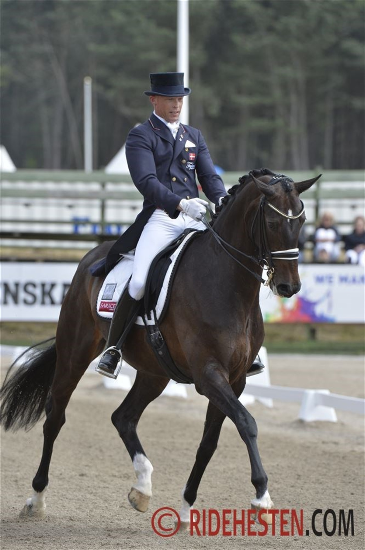 På dressurbanen blev det i dag til en andenplads til Joachim Thomsen på Søbakkehus Mia Bella e. Blue Hors Don Schufro, hun vrinskede flere gange i programmet men blev ved Joachim, desværre var der noget dommeruenighed om deres præstation, og de sluttede på andenpladsen med 72,079% slået af hollandske Patrick van der Meer og Coco Chanel med 73,5% Carina Cassøe Krüth og Heilines Hot Mix e. Blue Hors Hotline kom ind på tredjepladsen med 71,737% - Vi har fået redet for meget på opvarmningen i går, så han manglede lige det lidt ekstra, der skal til inde på banen, forklarede Carinas træner Hasse Hoffmann, da Hot Mix virkede lidt mat men gik fejlfrit.