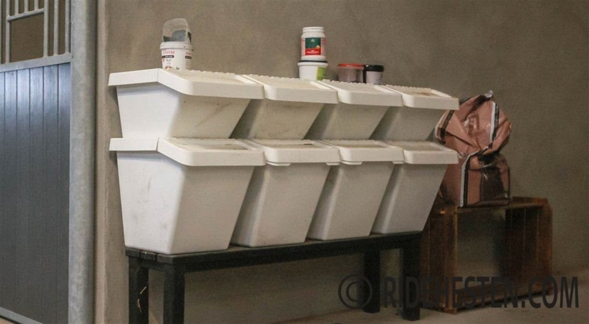 Vi kender det alle. Det går lidt stærkt når der skal fodres og ofte ryger der lidt ved siden af. Hvis du sætter dine fodertønder op i højden, er det nemt at feje under dem, hvis du spilder foder. Bonus er, at rotten på den måde heller ikke kan gemme sig mellem tønderne.