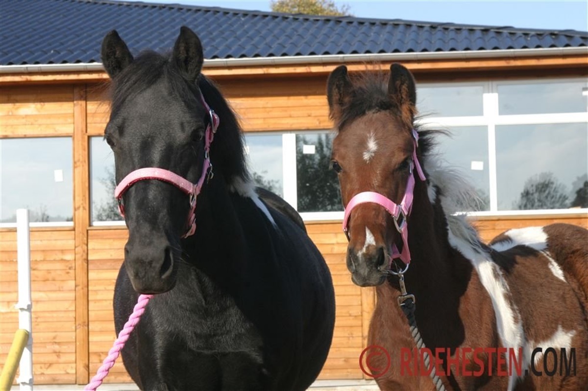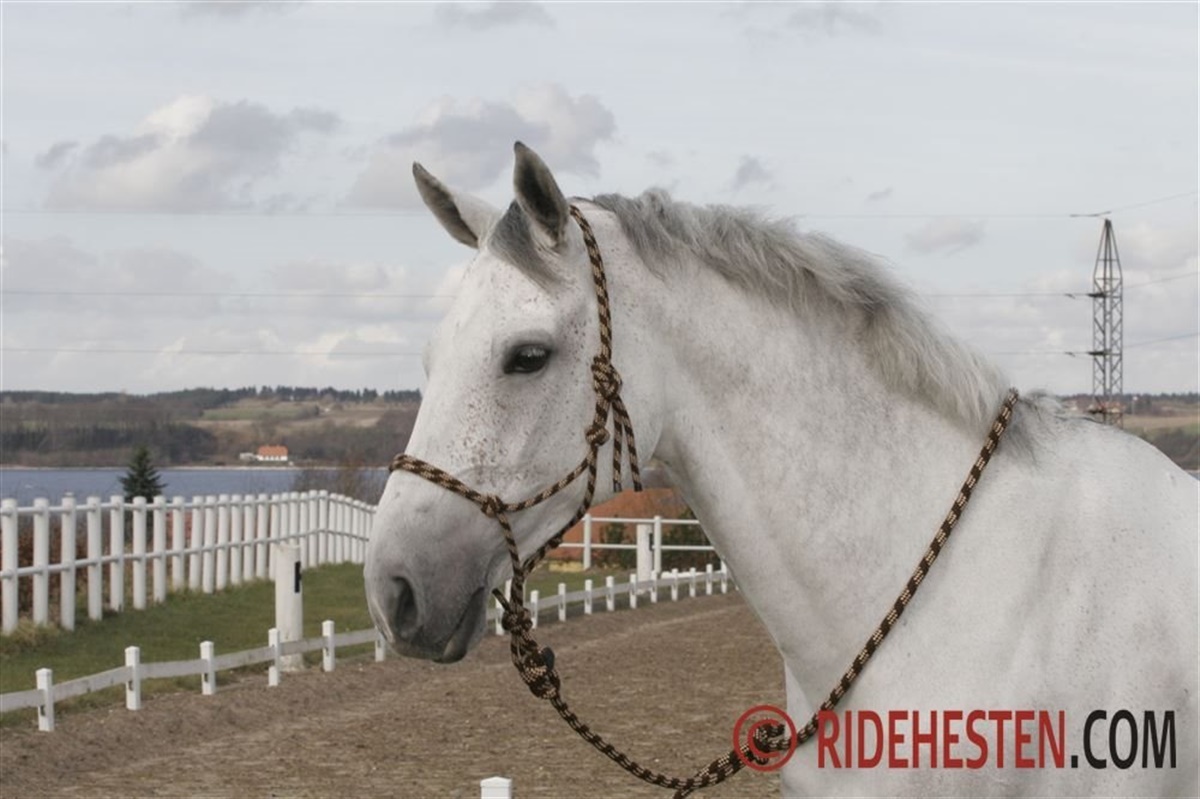 Det giver en smule mere kontrol over hestens hoved. Brug altid rosende ord, når du lægger rebet på hesten. Når I er klar, så prøv forsigtigt at føre grimen henover hesten mule og op over hovedet bagved ørerne. Det tager sikkert flere forsøg, inden det lykkes, men du må ikke tabe tålmodigheden. Når først grimen er på, så lad den være i et par dage indtil hesten vænner sig til det, så hesten accepterer at have grimen på, inden du begynder at øve det at tage grimen af og på igen.