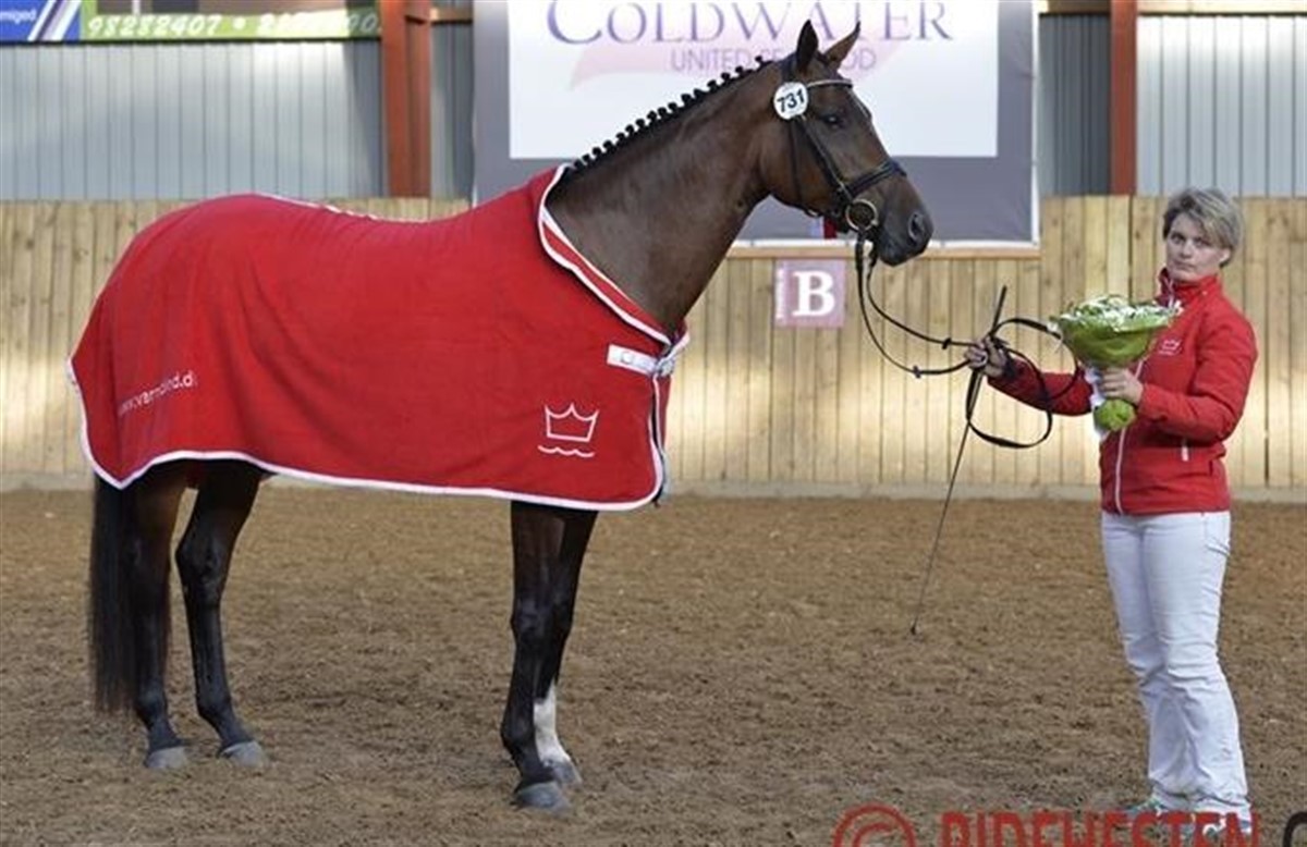Hos de 2 års dressurbetonede hopper gik fløjen og en billet til Eliteskuet til kat. 721 Højgaardens Miss Unique e. Tailormade Temptation/ Bernstein, Opdrætter: Brian Jensen