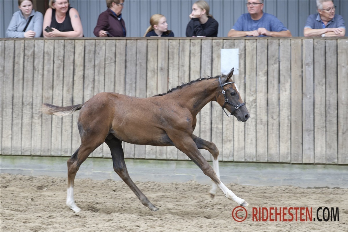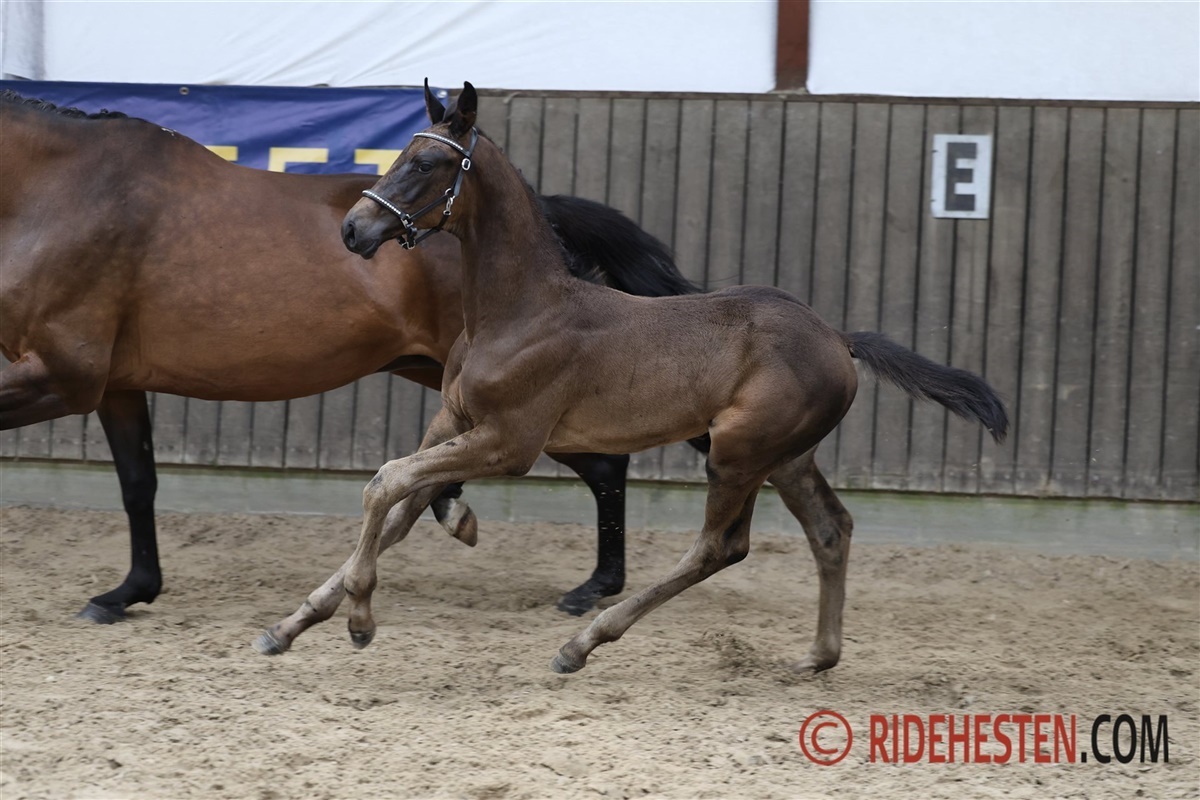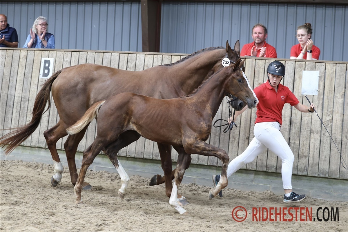 Katalog nr. 723 VOLSTRUPS VITELLO e. Vigado/ Volstrups Cash (opdr. og ejer Pia Hollænder og Henning Jensen) blev udtaget som dagens bedste springbetonede hingsteføl og skal ligeledes videre til Eliteskue.