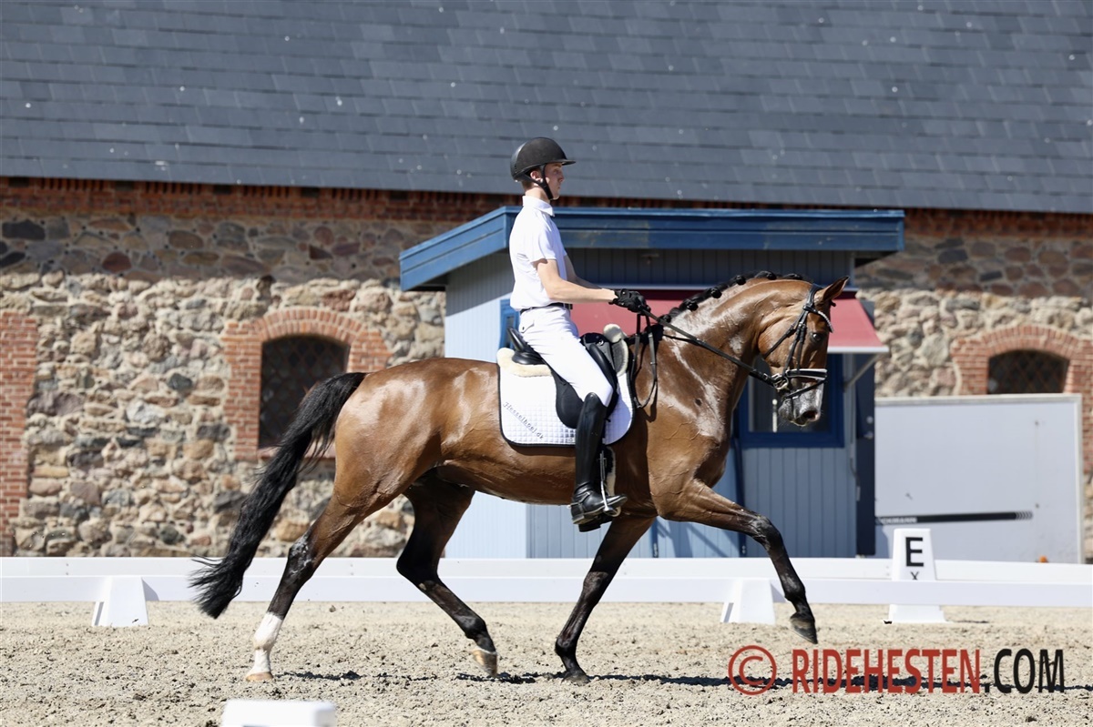 Det var en fornøjelse at se ryttere og heste i bruttotruppen på gårdspladsen i dag. Enkelte heste var mere mærket af varmen end andre, men Jens Holm Kristensen måtte finde de helt store superlativer frem til enkelte ridt, som var helt i særklasse. På førstedagen har rytterne redet det indledende program, mens den tekniske sværhedsgrad stiger i morgen, onsdag, hvor rytterne skal vise finaleprogrammerne, som skal rides ved UVM i Verden, der finder sted i starten af august.