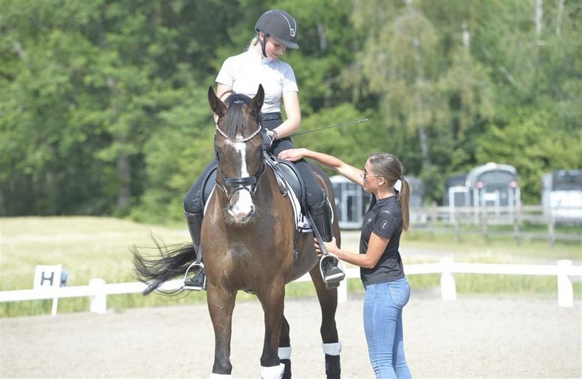 Men jeg fik sadlet op og opvarmet Panda, så hun var klar. Vi fik rigtigt meget med hjem i ærmet som man siger. Det var rigtigt godt med nogle andre øjne på os. Vi fik trænet en del changementer og fik nye måder, vi kunne gøre det på. Det var rigtigt dejligt.