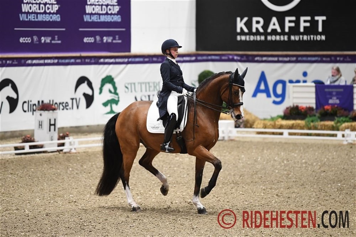 I 2022 bragte vi i oktober-udgaven af magasinet Ridehesten en profilartikel om den unge, norske Grand Prix-dressurrytter, Mathilde Merethe Klaesson, der repræsenterede sit land ved VM i Herning 2022. Det gjorde hun med dansk varmblodsvallakken Sandbæks Rio-El e. Skovens Rafael/ De Noir (opdr. Inger Kirkegaard Kjeldgaard), med hvem hun blev individuelt nr. 48.