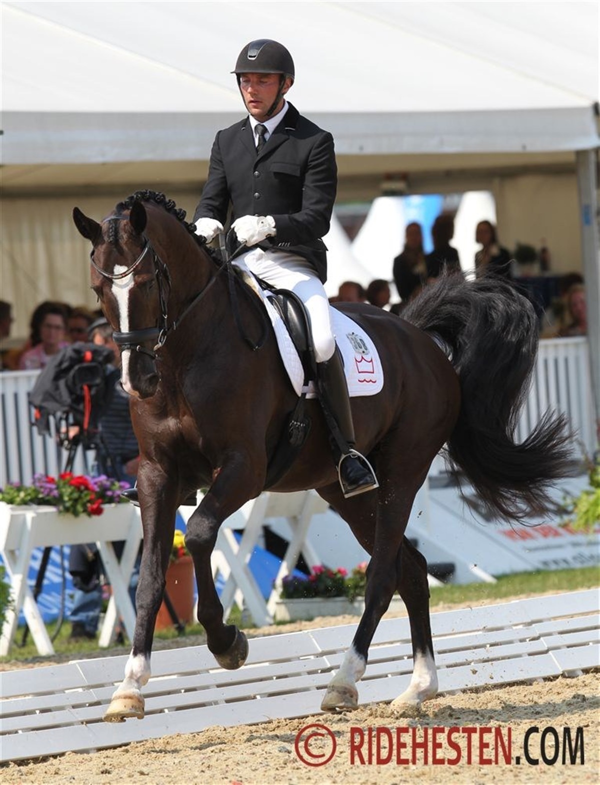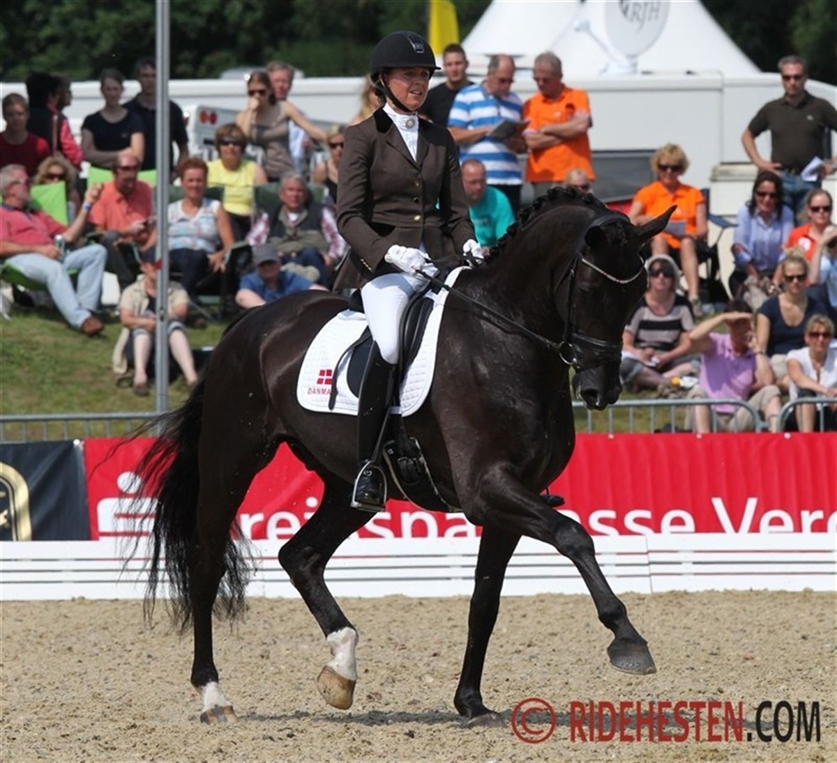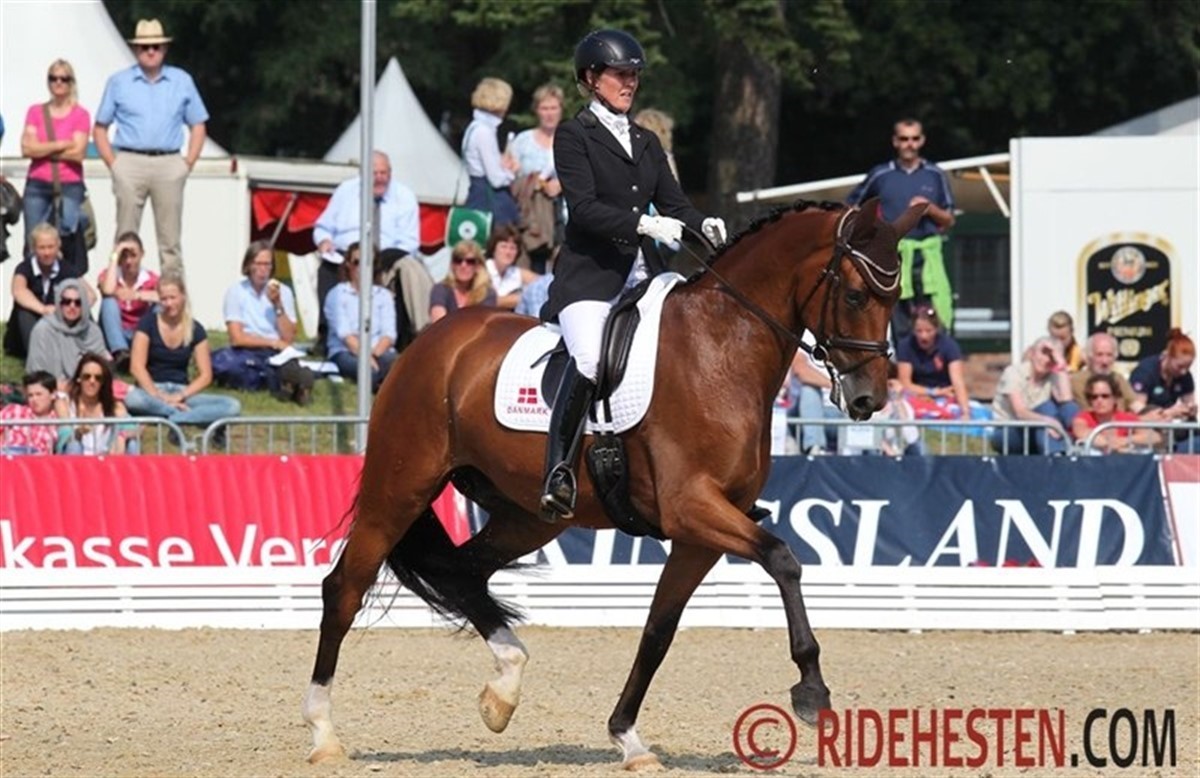 Sanne Henningsen på sin egen Superman W e. Sunny Boy var i aktion som den 2. danske ekvipage og også de leverede en flot og sikker præstation, der var så godt som fejlfri. Den samlede score til den dynamiske og kraftfulde Superman W lød på 8,18 point, og der blev bl.a. givet karakteren 8,5 for galoppen. Den score rakte til en samlet placering som nr. 11 i klassen, hvilket betyder at Sanne og Superman W er klar til lørdagens finale, hvor de 12 bedste fra dagens kvalifikation kommer med. John Hvalsøe Saul og Blue Hors Hotline-datteren Sirikit var 1. danske ekvipage, der skulle betræde sandet i VM Arenæn i Verden. Ekvipagen leverede et flot og sikkert program, hvor Sirikit virkede afslappet og afspændt - kun i et enkelt galopanspring viste den elegant hoppe sig en smule spændt, men det fik John hurtigt redet sig ud af. Ridtet gav dog også indtryk af, at der ikke rigtigt blev lukket helt op for hoppens kvaliteter. Den samlede score lød på 8,12 point, og ekvipagen blev bl.a. honoreret med 8,8 for traven. Det rakte til en samlet placering som nr. 13, hvilket betyder at John og Sirikit lige nøjagtigt ikke kommer med direkte i finalen. Men de har muligheden for at kvalificere sig via trøstfinalen i morgen. Michale Grønne Christensen og De Noir-sønnen De Negro Wi sluttede på en samlet 19. plads med en score på 7,88, hvor karakteren for De Negros flotte skridt lød på 8,7. Marianne Helgstrand og Schakiro Pilekær efter Blue Hors Don Schufro blev nr. 22 i dagens klasse med 7,72 point. Schakiro skridter eminent, og her lød karakteren da også på 9,0, men hesten var lidt spændt og stærk for Marianne i første del af programmet, og ridelighedskarakteren lød i dag på 6,9. Som dansker i Verden kan man også roligt være stolt af danske Anders Dahl, der er til start i 5-års klassen på KWPN-vallakken Cashmir e. Serano Gold. Anders fik vist et flot program med en utrolig velredet hest, hvor især galoppen var flot. Karakteren lød på 8,18 point, og det betyder at Anders Dahl deler 11. pladsen med Sanne Henningsen. Cashmir er ejet af Anders' kæreste, engelske Fiona Bigwood. Klassen blev vundet af den tyske rytter Eva Möller på oldenborghingsten Sa Coeur med en samlet score på 9,18 - hingsten fik bl.a. 9,8 for sin fabelagtige skridtbevægelse. Flere af de heste, der på forhånd var udset til at være blandt favoritterne, bl.a. de to hollandske hingste Charmeur og Vitalis, endte også uden for de 12 placeringer, er giver direkte adgang til finalen, så det bliver en spændende trøstfinale i morgen. Trøstfinalen for 5-års heste afvikles i morgen kl. 15, og finalen lørdag kl. 15. 6-års hestene skal i vet-check senere i dag, og de skal gå kvalifikation i morgen fra kl. 8. Du kan se samtlige resultater fra Verden HER