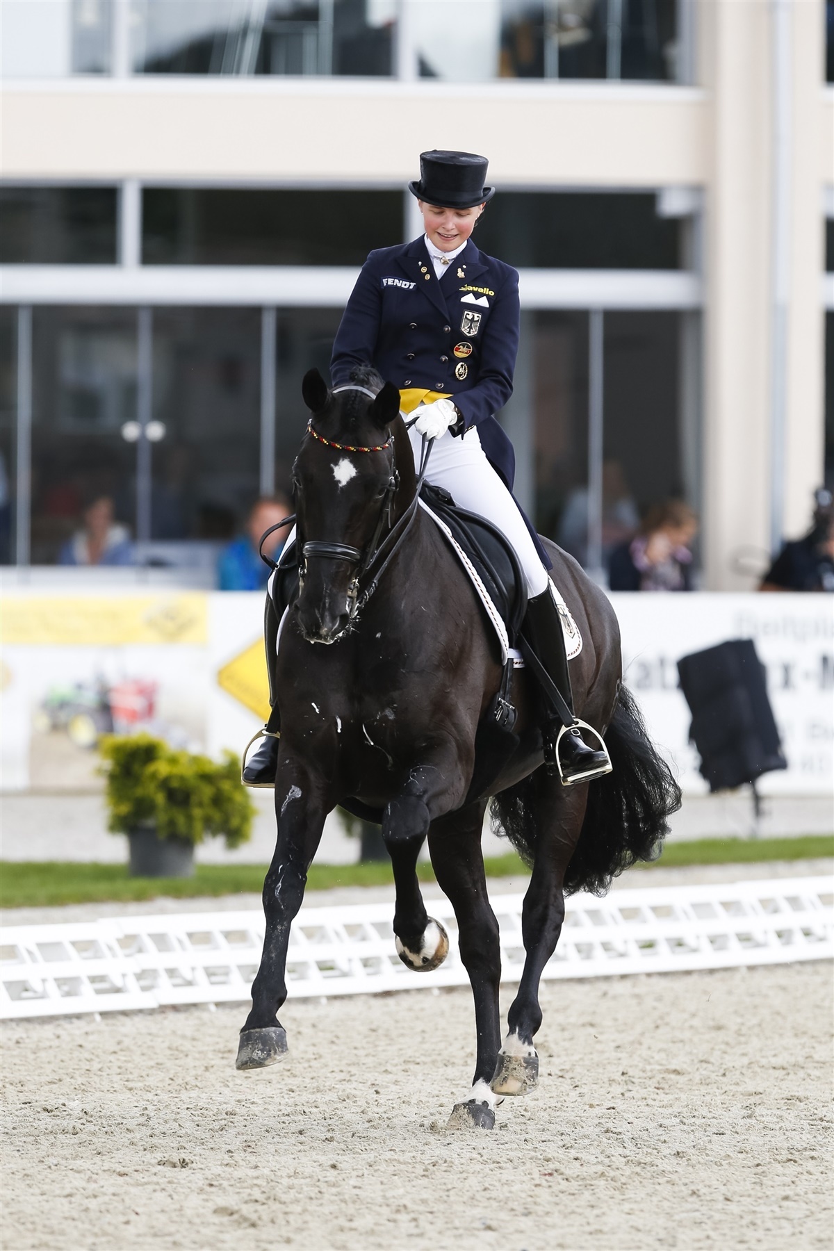 Det blev til en tysk sejr i Grand Prix Kür ved Europamesterskaberne i dressur for U25 rytterne. Her var Sanneke Rothenberger med Deveraux OLD e. De Niro/Rohdiamant suverænt bedste ekvipage med en procent på 80,45%. Andenpladsen gik til Florine Kienbaum med Doktor Schiwago 3 e. Don Frederico/Weltruhm, der ligeledes er fra Tyskland. Ekvipagen her blev belønnet med 77,175%. På tredjepladsen blev det østriske Diana Porsche med Di Sandro e. De Niro/Sandro, de sikrede sig en procent på 76,0%.