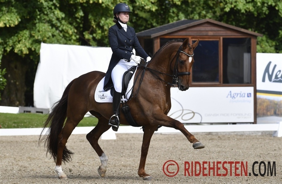 Sara Aagaard Hyrm, falder for aldersgrænsen for pony til årsskiftet og har derfor været på udkig efter den rigtige hest, der kan tage hende godt med videre i junior- og ungrytterrækkerne. En hest, som kan sine ting op til Intermediaire, som er nem at ride og er en kammerat på banen. Kemien mellem hest og rytter var der fra første ridetur, og Sara hoppede af med et stort smil.