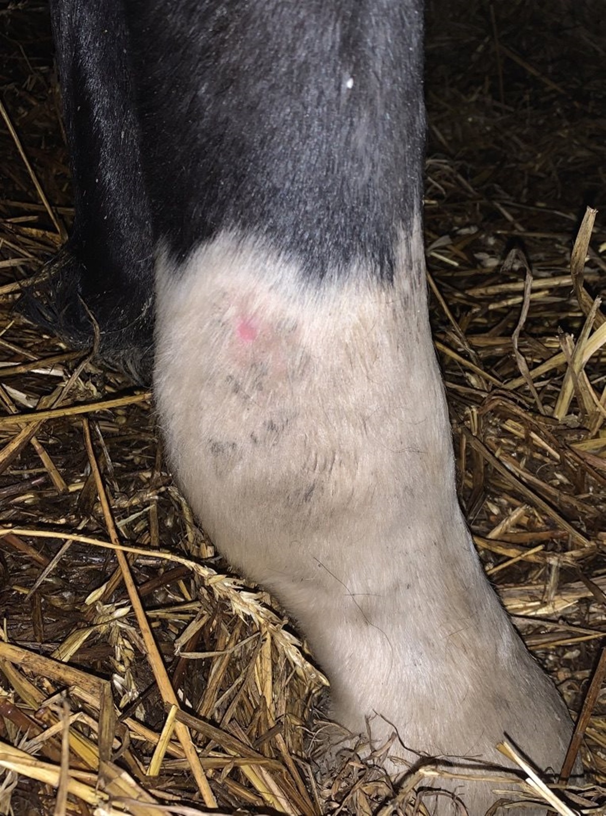 Sara kontaktede sin egen dyrlæge, som satte Esmay på antibiotika i fem dage, men uden en synderlig forbedring. Esmays bagben var stadig hævet og flere af benene var angrebet af muk.