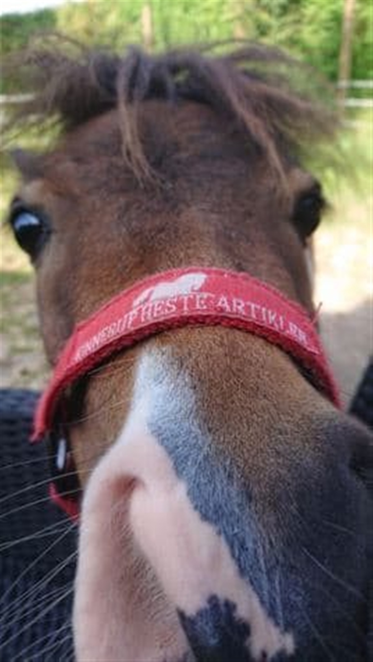 Miniaturehesten Minni er nysgerrig og vant til at blive kælet meget med af hele familien, da hun er en del af familien på lige fod med mennesker og hunde.