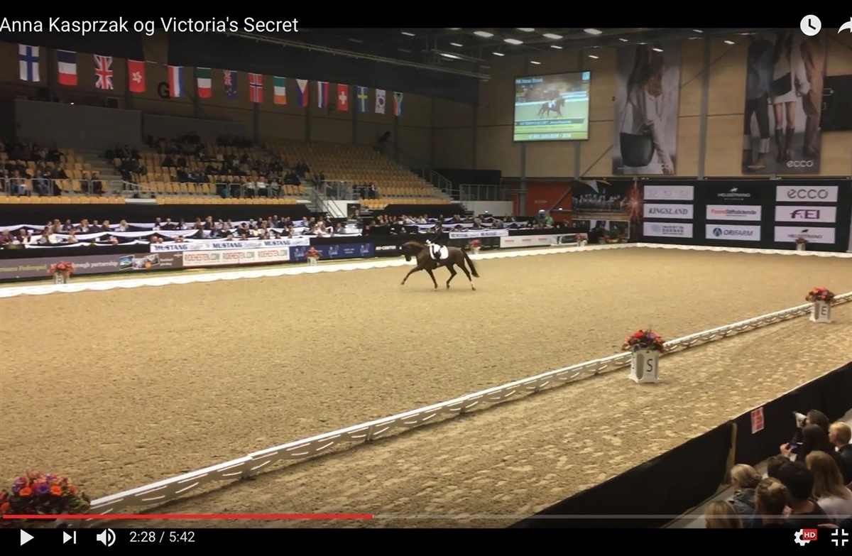 Se Anna og Vickys flotte 10-tals ridt (Video). Det er ikke hver dag, dommerne uddeler så flotte karakterer, som Anna og den 5-årige hoppe Victoria’s Secret høstede ved 5-års championatsfinalen i dressur i dag. Se eller gense programmet her. Ridehesten var selvfølgelig på pletten, så hvis du ikke var til stede under Annas flotte ridt, har du her muligheden for at se (eller gense) det: