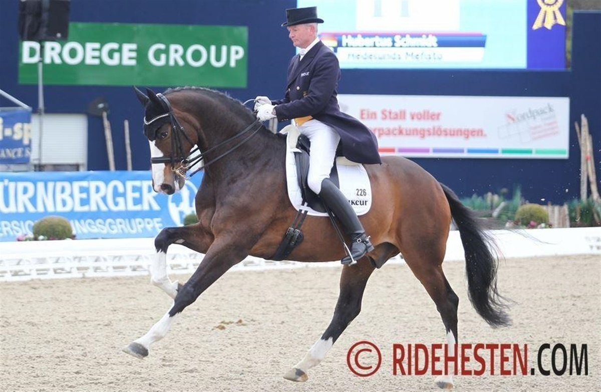 Den 12-årige DV-vallak Hedelunds Mefisto e. Michello/ Matador (opdr. Rikke Kvist), der tilhører Vivi og Christian Vang-Lauridsen, klarer sig glimrende med en af Tysklands bedste dressurryttere, Hubertus Schmidt. Sammen brillerede de i weekenden i Hamburg, hvor det bl.a. blev til en sejr i Grand Prix Kür med 77%.