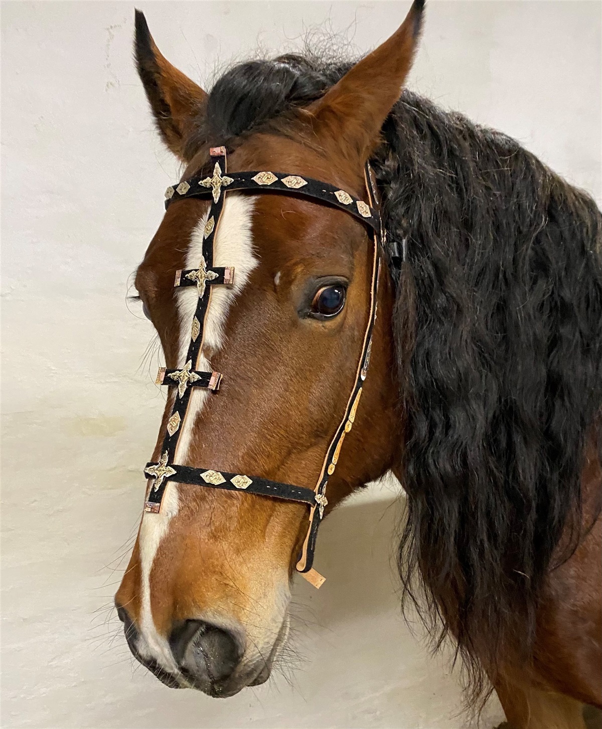 Det igangværende projekt er nu at få rekonstrueret hele hovedtøjet, som ud over bidslet (hvor der på sidestænger og kindplader har været monteret fornemme sølvplader), rummer 36 forgyldte messing/bronze-beslag (se herunder for rekonstruktionsforslag samt de 4 typer forgyldte beslag samt et lille bronzerør som remendeholder).