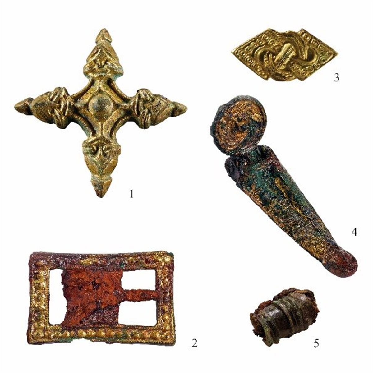 I graven lagde man den afdøde i et adskilt rum i den nordlige del, mens resten af kammeret blev fyldt op med gravgaver og dyreofringer. Bl.a. er der dokumenteret et pilekogger med 22 pile, et sølvsmykke, guldfolie fra et skrin, en sadel, sadeltæppe, hestefoder og hovedtøj til en hest.