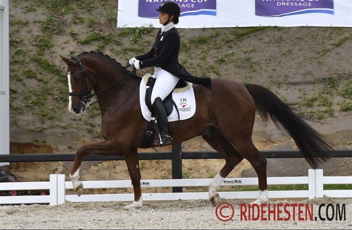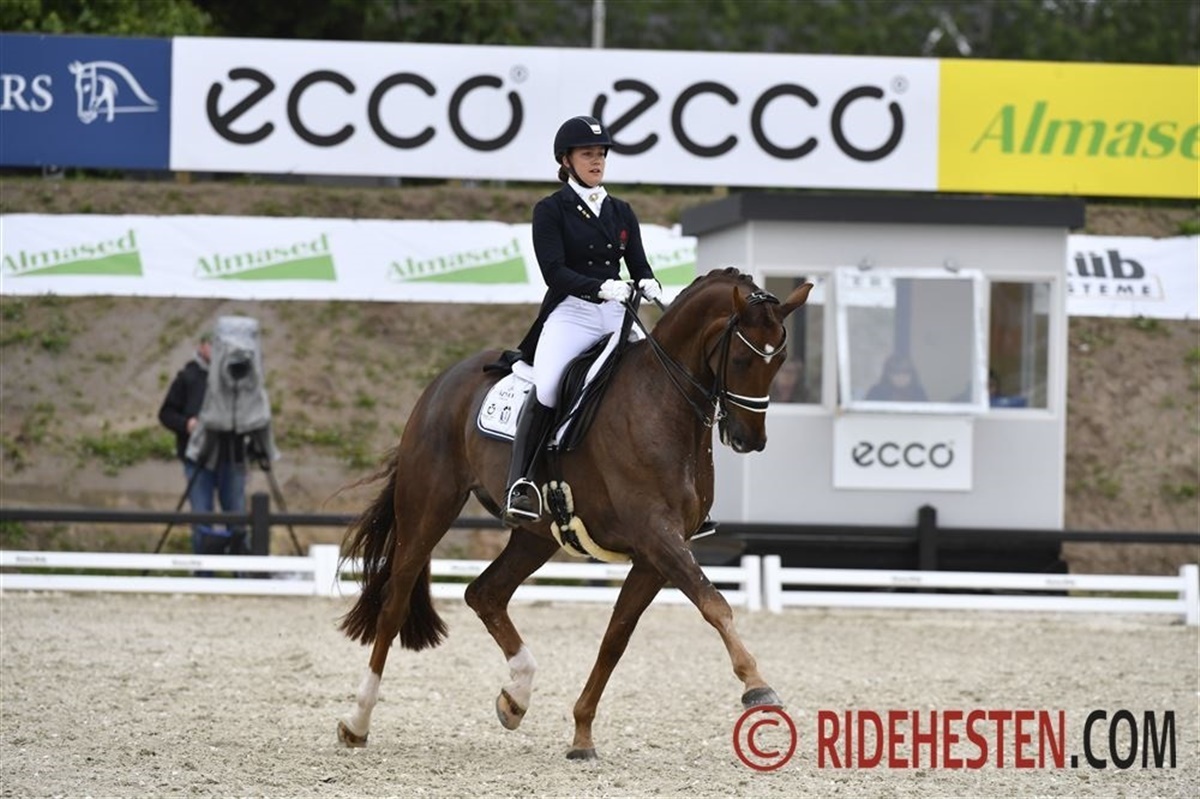 Cathrine Dufour havde omvendt hænderne fulde med Bohemian, der går med vældig energi, men hun formåde på bedste vis at kontrollere energiudladningerne og de fik vist et ridt vurderet til 73,184% I går sejrede parret, men Anna Kasprzak gik foran i dagens klasse med 74,263% Det var blot ottende gang Anna sad i sadlen på Quarton, som hun har købt hos Helgstrand Dressage i maj slutningen af maj måned. Det er imponerende så hurtigt de er blevet et par.