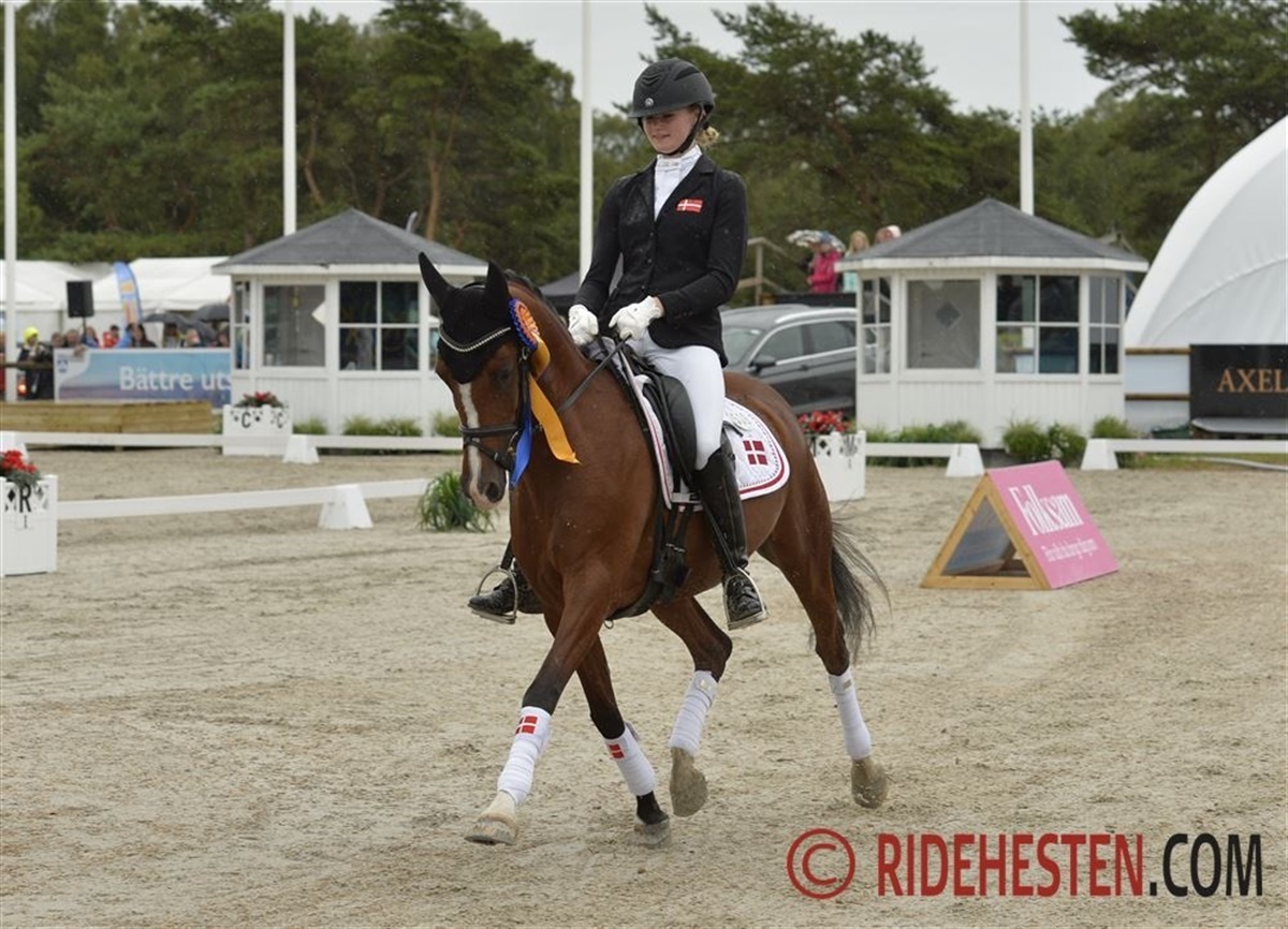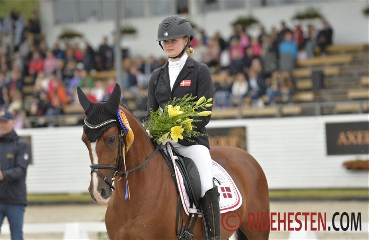 Det er Lauras sidste år som ponyrytter, men hun har en hest klar, fortæller hun. Sejren kom i hus, fordi hun, med egne ord har en "lidt snørklet" kür, hvor hun går lige på og hårdt med kontragalop på volter efter indridningen. Hun fik også sit program til at passe godt med musikken, og det er tydeligt, at Laura nyder at ride sit svære program. - Det er en stor og flot arena og der er meget at kigge på for Megare, fortæller Laura, men selvom der var mange indtryk, så klarede parret det flot og sikkert. - Jeg har aldrig fået klapsalver, når jeg har redet op ad midterlinjen før, fortalte hun. Hun trænes af Sanne Henningsen, og hun har faktisk arvet et par ridestøvler af sin træner, og dem er hun vildt glad for, men i dag fik hun et par nye støvler i præmie fra Cavallo.