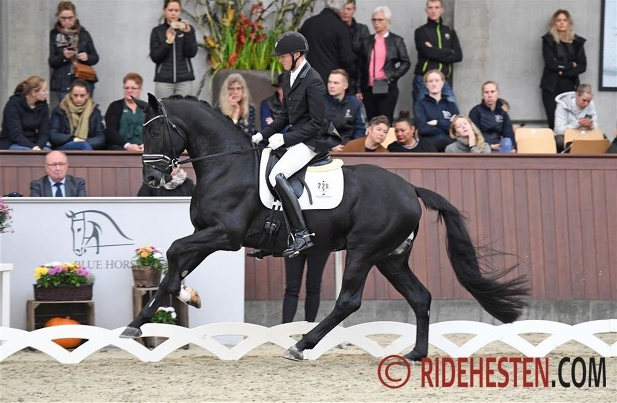 Den hollandske hingst Kardieno e. Dante Weltino/ Parcival, der rides af Helgstrand-berideren Thomas Sigtenbjerggaard, er en stor, stærk og imponerende hest, der fremstår meget funktionel og arbejdsvillig. Hingsten var så uheldig at få tungen over biddet i starten af ridtet, men det fik hest og rytter heldigvis hurtigt løst. Dommerne betegnede hingstens travbevægelse som imponerende, rummelig og kraftfuld og skridten som energisk, taktvast og ved god overtrædning, mens galoppen var op-ad-bakke og med stor rummelighed. Der indløb nogle spændinger, der gik lidt ud over rideligheden, men der var ingen tvivl som hestens store kapacitet, lød det fra Dennis Fisker på vegne af dommerpanelet. For galop såvel som for kapacitet fik Kardieno 9,8 og to gange 9,0 for skridt og trav.