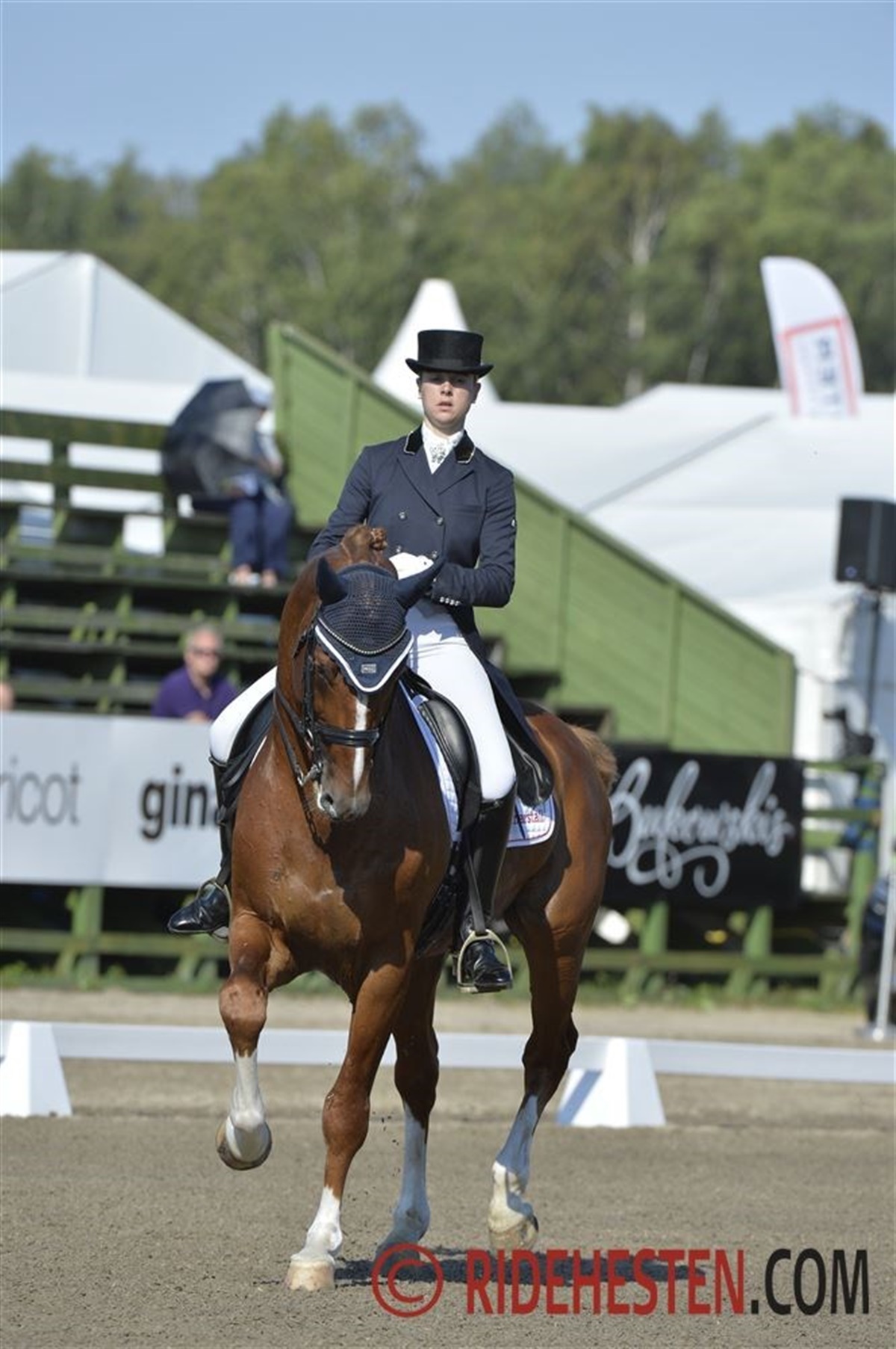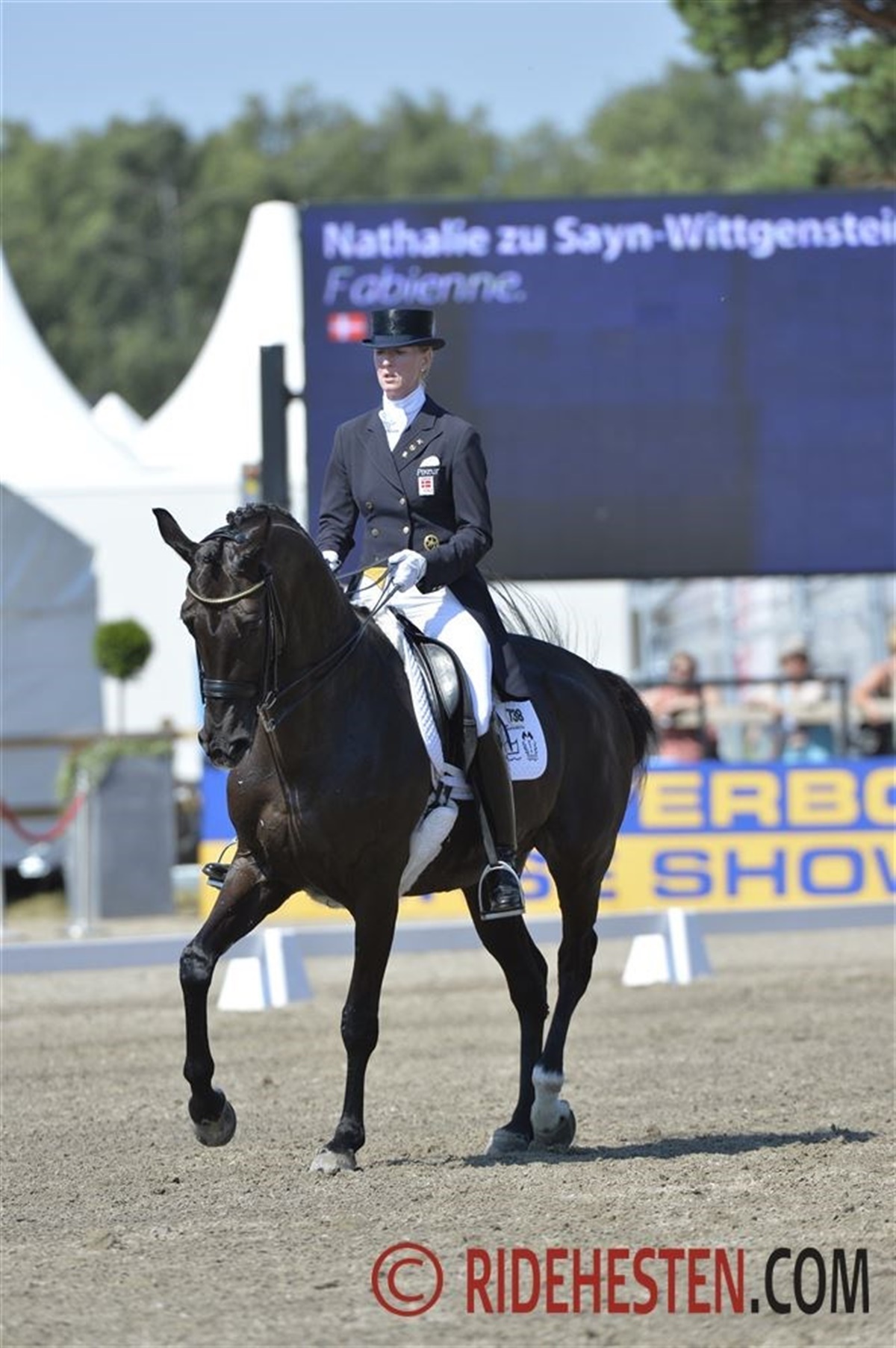 Dommerne var noget uenige om Nathalies præstation på Fabienne e. Blue Hors Future Cup opdr. af HKH Prinsesse Benedikte, ide de fik placeringer fra pladscifre 2 til 8. Nathalie red et sikkert program på Fabienne, med mange flotte øvelser bl.a. to flotte og snorlige changementsserier og fine pirouetter. En lille taktfej i den sidste øgning blev efterfulgt af en sikker afsluttende midterlinje, og så gav en af dommerne hende et velfortjent 9-tal for sin opstilling og indvirkning. Der var ellers lige nogle spændende øjeblikke, da den temperamentsfulde hoppe rejste sig og snurrede rundt, da hun var på vej ind på stadion, men Nathalie kender hoppen godt, og hun fik hende sikkert rundt på banen. Med 69,26% red hun sig ind på tredjepladsen, og det ser ud til at parret sikkert og stabilt begynder at optjene flere og flere points internationalt.