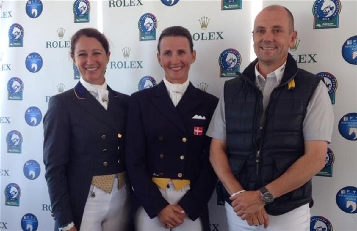 Alle tre topplacerede heste er danskavlede. Andenpladsen gik til den sejrsvante ekvipage Lars Petersen og hoppen Mariett e. Come Back II/Sydney (opdr. Gunnar Mousten), der har vundet flere World Cup-kvalifikationer i den nordamerikanske liga og lige nu er verdensranglistens nr. 19. På tredjepladsen kom amerikanske Catherine Haddad-Staller, som efterhånden har haft en håndfuld danske Grand Prix-heste. Igår red hun Mane Stream Hotmail e. Michellino/Havel, som er danskavlet med registreret i det tyske oldenburgforbund.