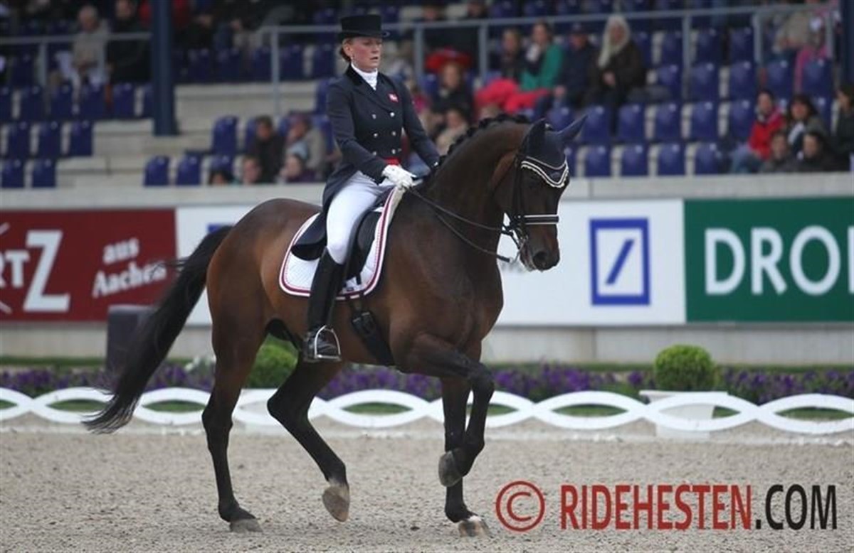 De to danske U25-dressurryttere, Nanna Skodborg Merrald og Sofie Jeppesen, repræsenterede de danske farver ved CHIO Achen i dag. For den seksdobbelte danmarksmester, Nanna Skodborg Merrald, blev det en ubetinget stor succes, da hun vandt klassen med 71,442% foran amerikanske Caroline Roffmann med 68,953%. Nanna, som egentligt er ungrytter, blev for blot få uger siden danmarksmester for U25'ere med hesten Milibar e. Milan / Liberty Dane (opdr. Fritz Jensen). Det var også med Millibar, at hun sikrede dansk sejr i Aachen i dag.