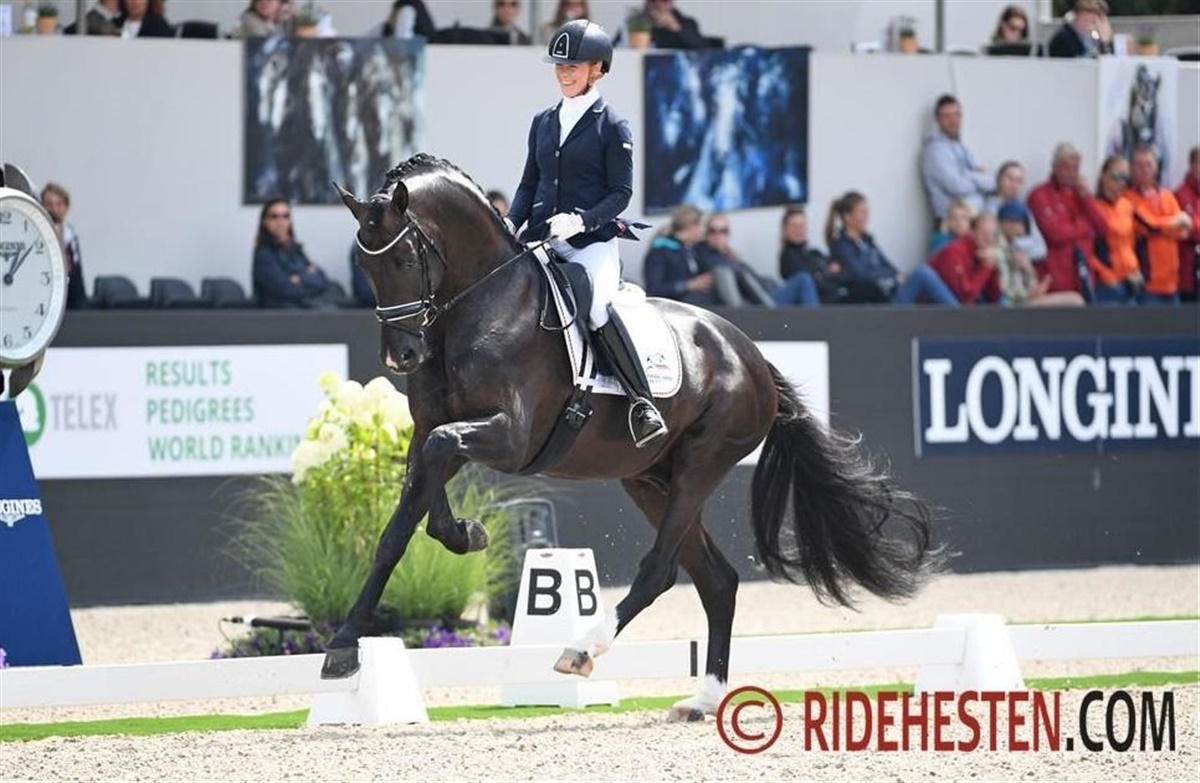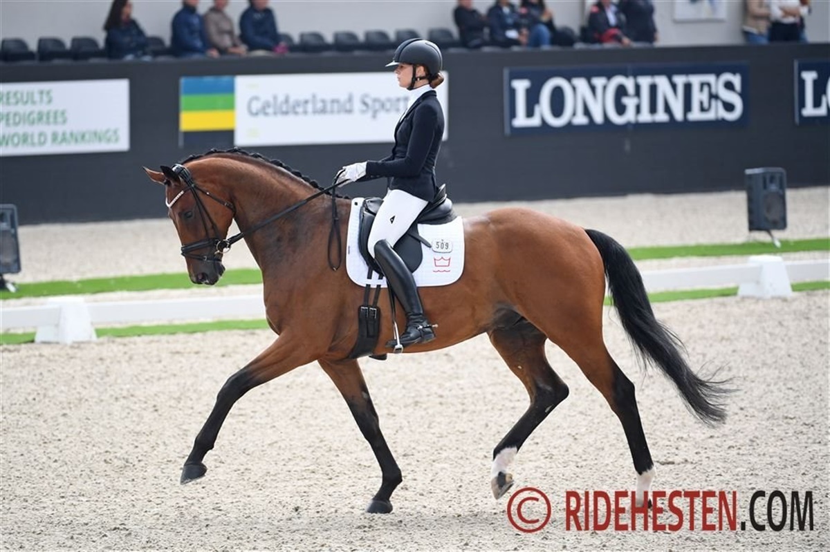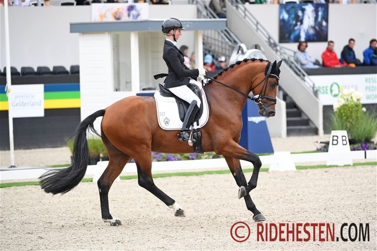 Under den lille men effektive svenske rytter Jessica Lynn Thomas (tidl. Andersson) har den tyske tophingst Secret e. Sezuan/ St. Moritz velfortjent taget sejren i den indledende klasse i FEI/WBFSH's verdensmesterskab for unge dressurheste med karakterer som bl.a. 9,9 for trav, 9,8 for fremtidsperspektiv og 9,7 for galop. Samlet opnåede den 9,54 point.