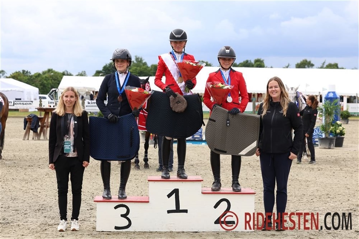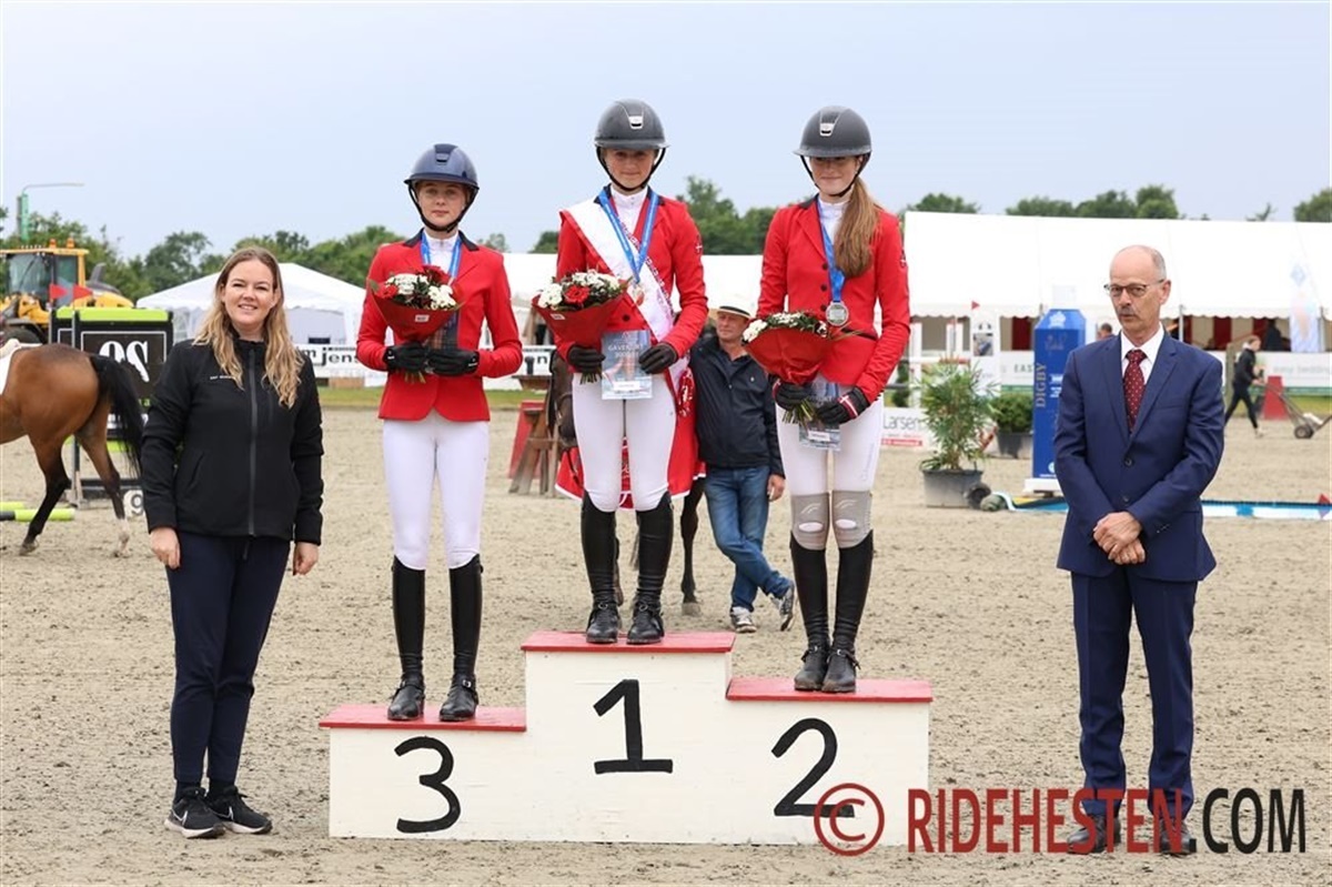 Ni ekvipager var til start på den svære bane, hvoraf de fire bedst placerede var danskere. Selma Hundborg Dressler og den 9-årige ponyhoppe Clounamon Coco har redet nogle virkelig flotte runder til mesterskabet i Hjallerup denne uge, og selvom parret fik et enkelt nedslag i dag, så var de sikret guldmedaljen, så Selma kunne stille sig øverst på podiet.