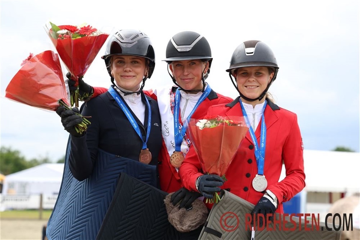 I ungrytternes mesterskab var danskerne igen sublime; hele fire af top-5-placeringerne gik til Danmark. Line Busk Heltborg og Gaville e. Chellthago Z/ Animo, der er en af landets mest succesfulde ekvipager på det niveau, har redet ene af nulrunder i Hjallerup og med hurtige tider kunne Line således hænge guldmedaljen om halsen i dag.