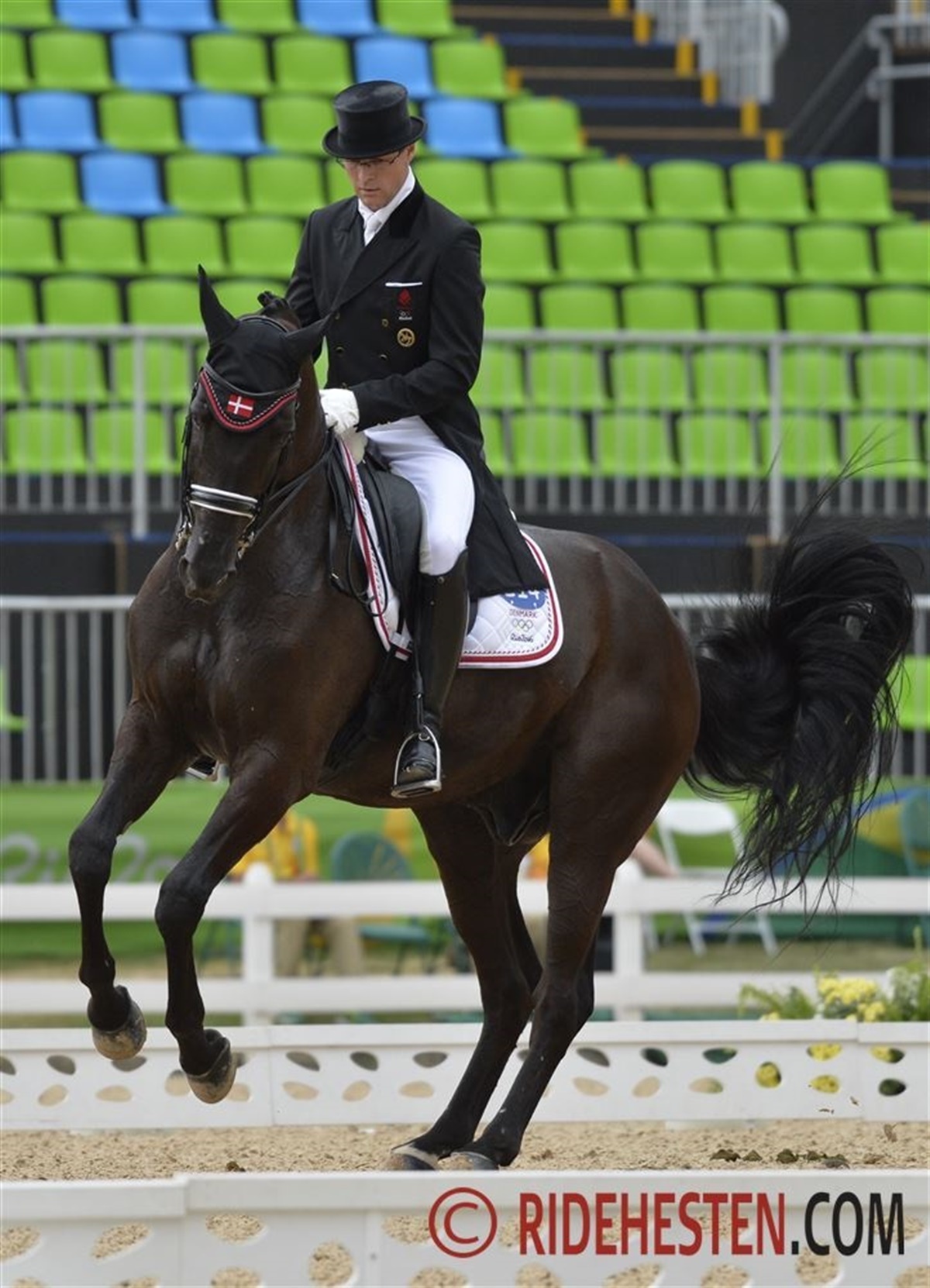 - Jeg red meget let på den på hviledagen, og så syntes jeg det lykkedes fint på opvarmningen inden Specialen. Han er meget grøn på dette niveau, og som Rudolf og jeg har talt om, så tager det mindst et halvt år inden han er, der hvor vi gerne vil have den. Og vi skal være realistiske og ikke presse på. I Specialen var mine piaffer betydeligt bedre. Jeg ved ikke om jeg har fået højere karakterer, og jeg har ikke set videoen, sagde Anders umiddelbart efter sit ridt, men jeg havde en meget bedre føling hele vejen rundt. Den var meget mere ved mig, og føltes mere energisk også i afkortningerne. Det hele var meget lettere, men så kom der nogle fejl, fx i etterne.