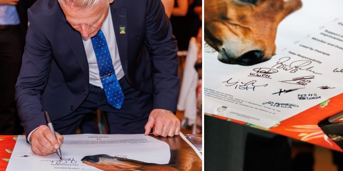 Der blev ligeledes underskrevet et charter, der forpligter hvert avlsforbund til aktivt at opretholde de principper for hestevelfærd, der er beskrevet nedenfor, og til at bidrage til et fælles engagement i løbende forbedring på tværs af den globale avlsbranche for sportsheste.