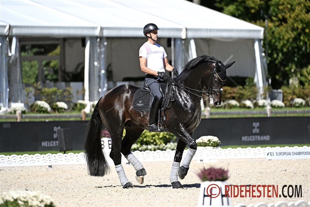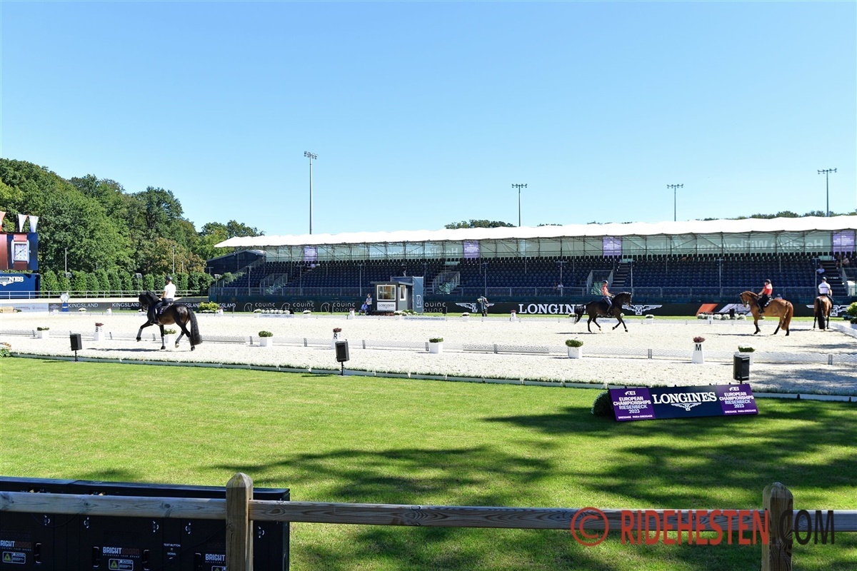 Mens pararytterne allerede startede konkurrencerne i dag, hvor Tobias Thorning Jørgensen forsvarede EM-guldet, så skal seniorrytterne først i ilden i morgen. Her starter holdkonkurrencen med første afdeling i Grand Prix og derfor var der i morges vettjek for alle hestene.