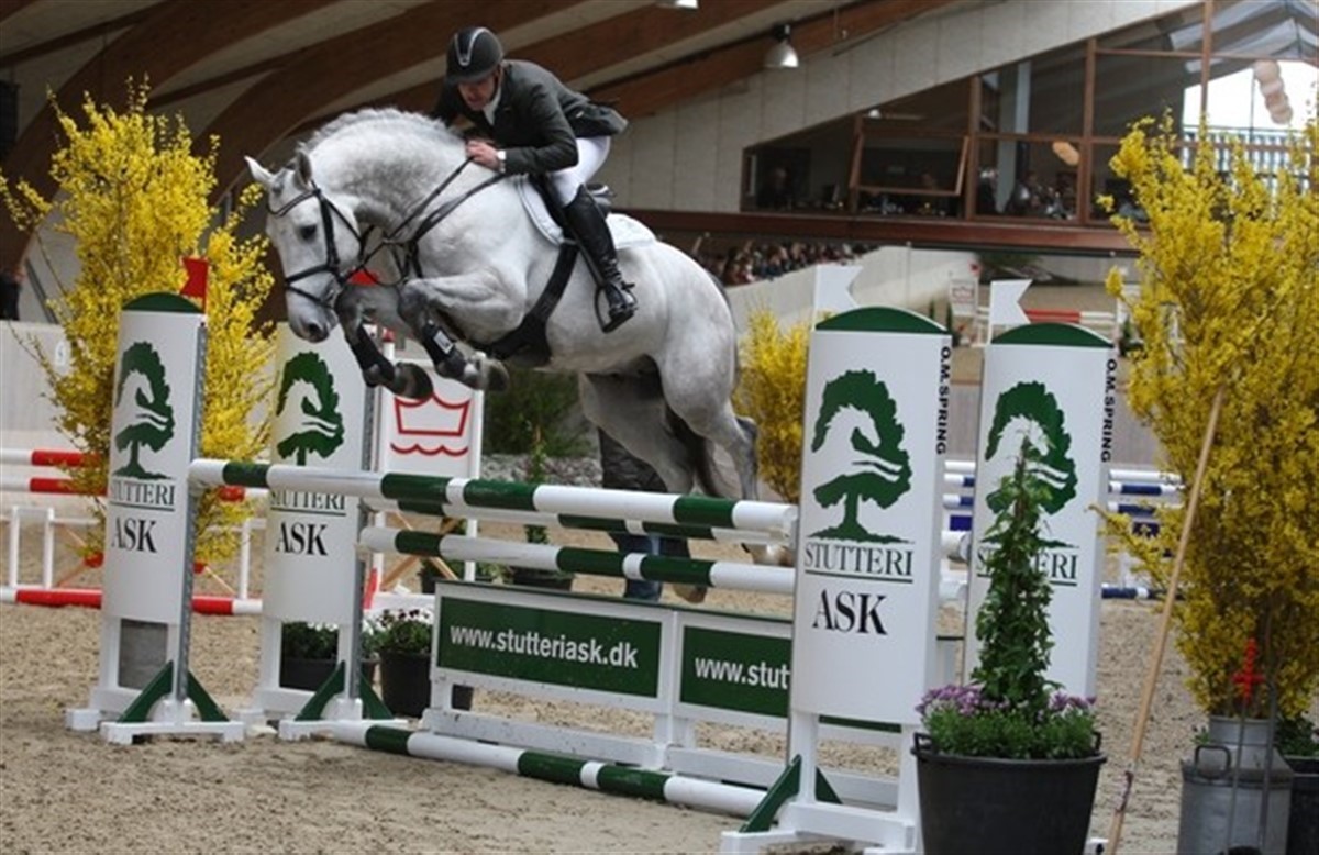 Traditionen tro, slog Stutteri Ask dørene op for offentligheden med Åbent hus og i samarbejde med Fyns Rideklub blev der også afholdt distriktsstævne i springning. Det var en flot hingstefremvisning i dag, hvor man jo må sige, at den ene fantastiske hingst efter den anden kom ind i hallen, lige som perler på en snor. Blandt andet blev den nyindkøbte 3-årige Charlton Sem Ask e. Cajus/Charmeur vist frem af Sarah Kromann Rosenlund. Desuden var der Ci Ci Senjor Ask e. Cassini I/Contender og Favorit Ask e. Diamant De Semilly/Darco, som lød til at være publikums absolutte foretrukne, begge hingste sprang særdeles godt i dag med chefberider Søren Møller Nielsen i sadlen. Søsterstutteriet Blue Hors havde også medbragt et par perler fra stalden i dag. Maria Andersen fra Blue Hors fremviste Blue Hors Rosoff e. Blue Hors Romanov/Prince Mab XX og Blue Hors Zack e. Rousseau/Jazz. Også den noget ældre herre, Blue Hors Don Schufro var kommet pænt i byen i dag. 17-årige Don Schufro e. Donnerhall/Pik Bube I, som jo blandt andet er dansk mester i dressur og har utallige internationale titler og placeringer, blev mønstret af Carsten Petersen fra Blue Hors. Også den succesfulde Casir Ask e. Cor de la Bryére/Landgraf I på 20 år viste, at han stadig kan hoppe glad rundt som en unghest, når publikum giver bifald. Mange fine afkom efter Ask-hingstene blev vist frem for publikum, men særligt to føl var værd at lægge mærke til i dag. For der er i år blevet født to føl med rugemødre på Stutteri Ask, det ene efter den unge Ci Ci Senjor Ask og det andet efter Lambrusco Ask. Den rigtige mor til dem begge er såmænd ingen ringere end RDS hoppen Feline Ask e. Carthago Z/Voltaire, som jo stadig er aktiv springhest på højt niveau under Søren Møller Nielsen. Arrangementet sluttede i bogstaveligste forstand på toppen med Lambrusco og Søren. Lambrusco Ask e. Landor S/Contender er gået hen og blevet 14 år, men det er ingen alder for en hingst af så fin kapacitet som ham. Springene blev sat op i sidste hul på forhindringerne og publikum holdt vejret, mens Lambrusco og Søren sprang uden nogen som helst problemer. Som nævnt så var der også c-stævne på Ask i dag, hvor der blev lagt ud med LB og LA inden hingstefremvisningen og dagen i Martofte blev rundet af med MB springning. Se resultater herfra på Fyns Rideklubs hjemmeside.