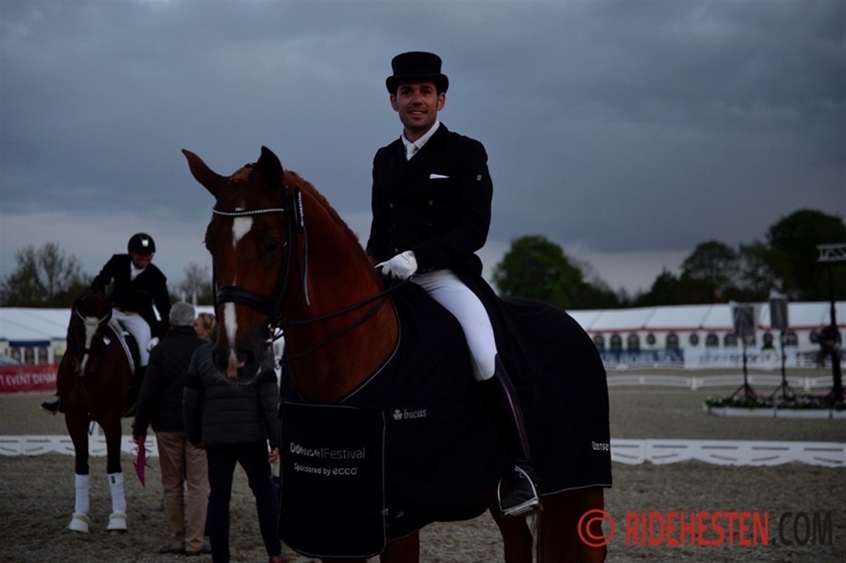 Severo henviste dermed sin chef Andreas Helgstrand til andenpladsen i klassen. Andreas har for få dage siden sat sig i sadlen på NOH's Daijoubo, og den tidligere vinder af Unghestechampionatet har endnu ikke stor rutine i de svære klasser, men Andreas fik i dag redet den 10-årige vallak til knap 70% i Specialen.
