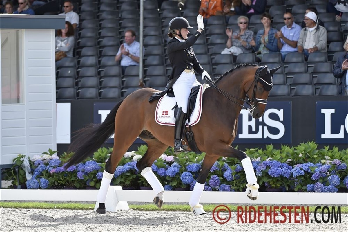 Danske Nanna Skodborg Merrald besatte syvendepladsen med Gørklintgårds Quantico e. Quaterback/ Carpaccio (opdr. Jørgen Ravn), mens Michael Søgaard blev nr. 11 med Slæbækgårds Santino e. Sir Donnerhall I/ Carano (opdr. Familien Himmelstrup).