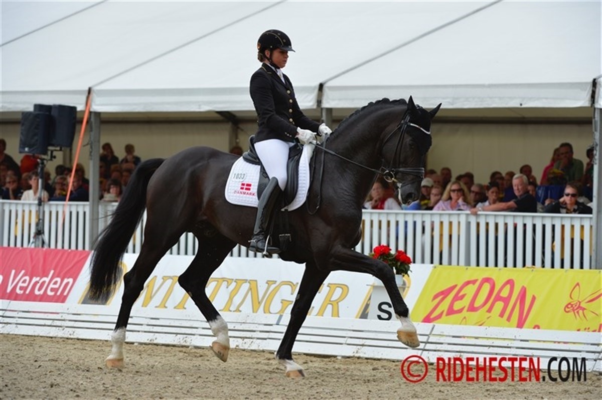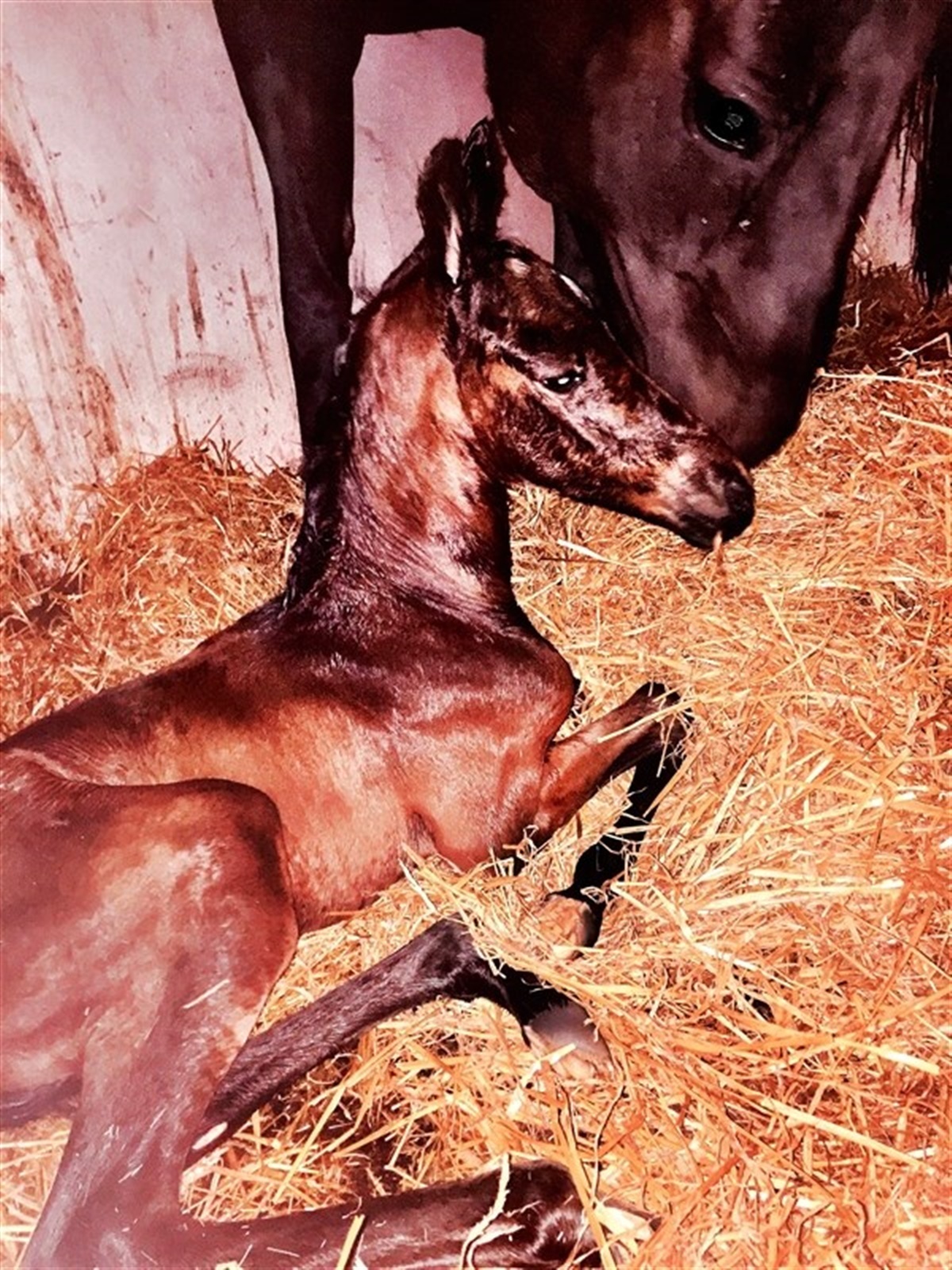 - Så kom hun endelig – 10 dage over tiden – en helsøster til Sezuan, vinder af UVM for 5-års i 2014. Et helt fantastisk ædelt mørkebrunt føl, der indfrier alle vores forventninger. Rugemoren opførte sig helt eksemplarisk. Den biologiske mor er guldmedaljehoppen Bøgegårdens Don Romina e. Blue Hors Don Schufro, og faderen er Blue Hors Zack. Vi er bare lykkelige og lettede over, at vores første lille ET-projekt er gået godt