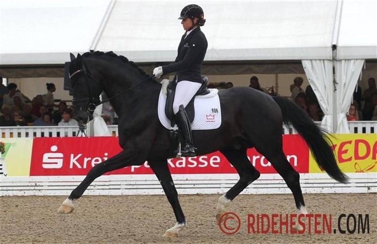 Med sin tyske rytter Dorothee Schneider dansede 6-årige Sezuan e. Blue Hors Zack/ Blue Hors Don Schufro (opdr. Linette Jæger) igennem programmet idag kort før middag og fik dommerne til at hive de store karakterer frem. Ekvipagen, der er en del af det danske 6-års hold ved UVM i Verden, gjorde dansk dressurhesteavl ære og har lagt sig solidt i spidsen.