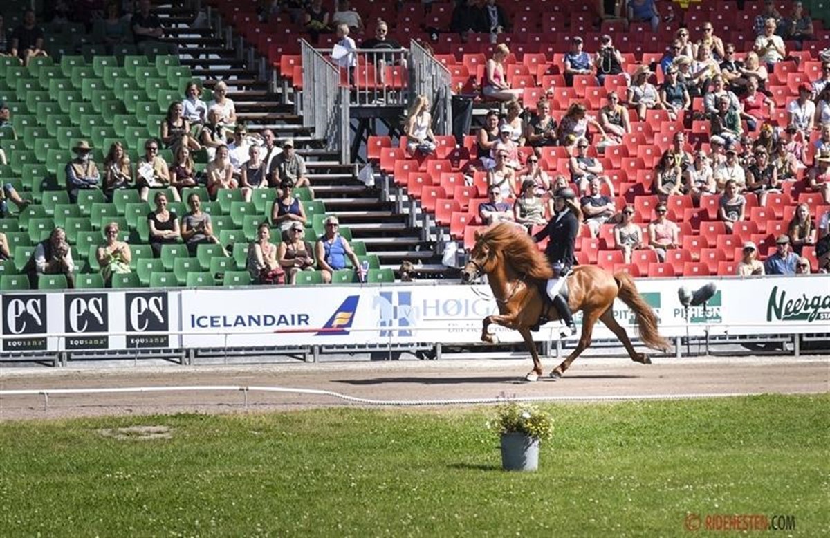 Banen minder om en travbane, dommerne sidder i små firkantede rum uden loft, der ligner kontorbokse fra amerikanske film, og hestene - ja, mange ryttere vil tænke ‘skovtur’, når de ser dem. Det er dog så langt fra en skovtur, man kan komme. Det er Verdensmesterskaberne for islændere 2015, der hen over weekenden bliver afholdt på Messecenter Hernings udendørs faciliteter. Hestene, der lige nu står i staldene, er forhåbentlig i deres livs form, pelsen er poleret med showshine, mulen med vaseline, og rytterne er klædt i hvide ridebukser og stævnejakke, nøjagtigt som til dressur- eller springstævner. Der er dog én regel: