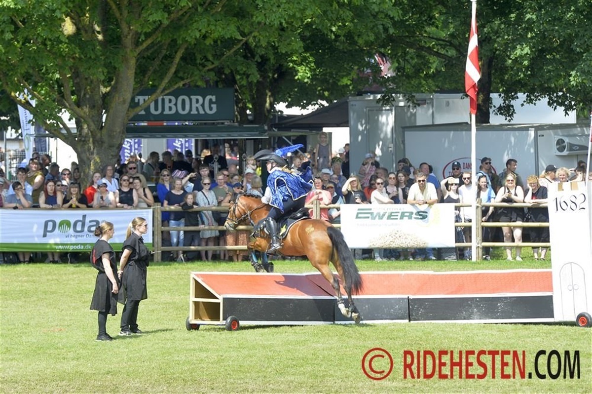 Også historien om de tre musketerer blev inddraget i showet, hvor en stor gruppe af New Forest Ponyer og Dansk Sports Ponyer leverede et actionfyldt show med både koordineret dressur og lynhurtig springning over faste forhindringer.