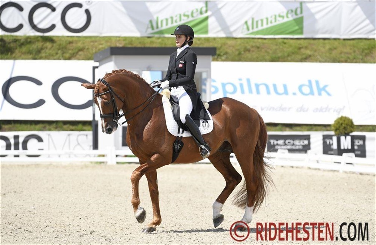 Laura Hviid, som vi tegnede et portræt af i magasinet Ridehestens februarnummer i år, har overtaget Sille Engermanns Darius, som Sille vandt U25-mesterskabet med sidste år. Deres samarbejde er endnu nyt, og Laura red sig ind på fjerdepladsen med 67,682%