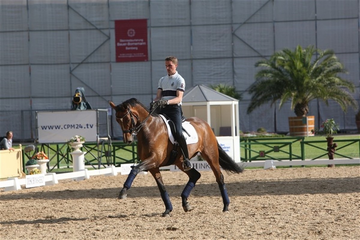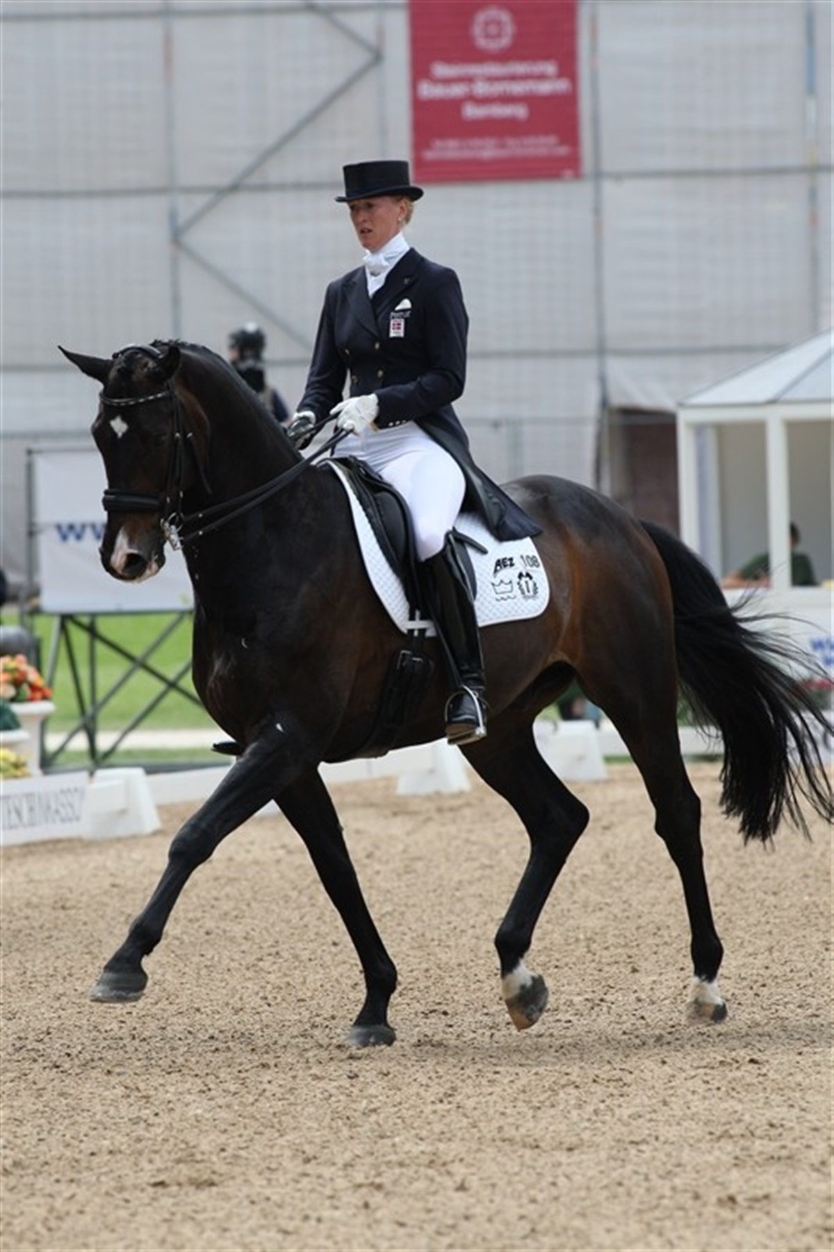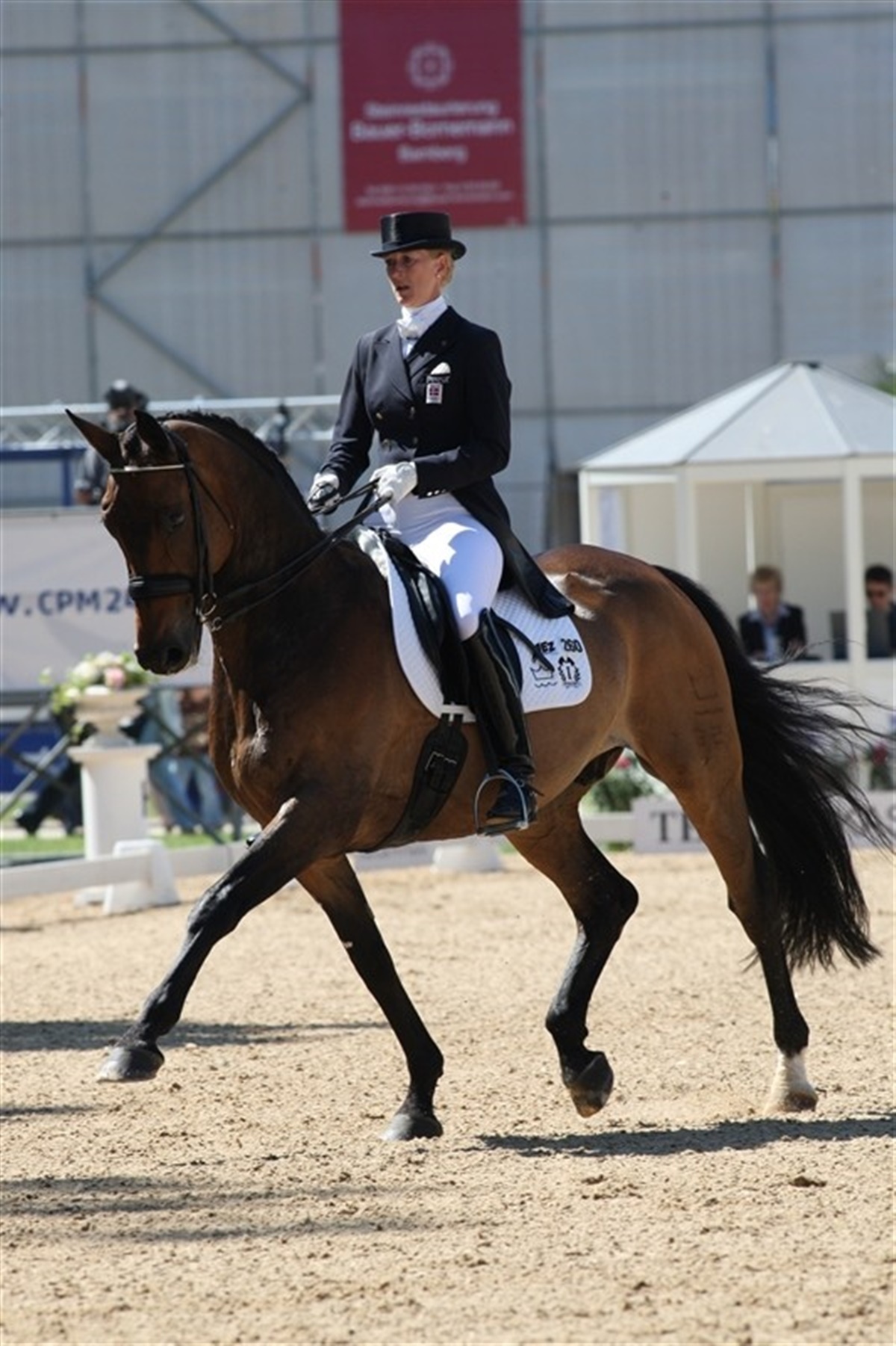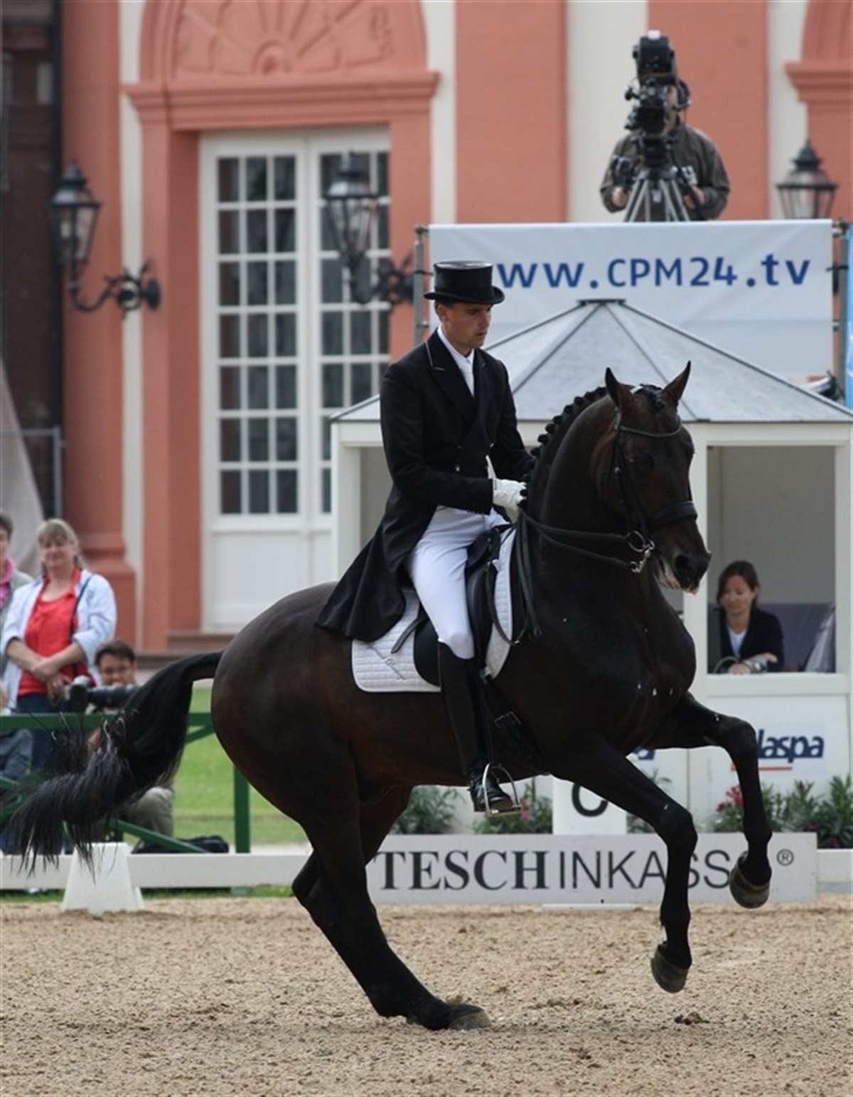 Den danske guldmedaljehoppe Polka Hit Nexen fik sin internationale debut i Lille Tur lørdag i Wiesbaden, sammen med Andreas Helgstrand dansede hoppen letfodet gennem travprogrammet, men galopprogrammet åbenbarede, at hoppen ikke helt er klar til konkurrencer på dette niveau - endnu! - Vi (landstræner Rudolf Zeilinger og Andreas Helgstrand) har besluttet ikke at starte Polka i intermediaire, det er endnu lidt for svært for hende i galopprogrammet, fortæller Andreas. Istedet for red han den 7-årige hoppe på opvarmningsbanen til almindelig træning, og der var sort af mennesker omkring banen, mens Polka Hit dansede forbi. - Det er en dejlig, letfodet hoppe, der kan komme til at vinde lille tur, når galoparbejdet er på plads, bekræfter landstræner Rudolf Zeilinger. For dressurrytterne og det dressurinteresserede publikum (og Ridehestens udsendte) bliver dagen i dag særdeles lang i Wiesbaden, for kl. 21.00 oplyses slottet og dressurbanen af projektørlys, og så er det dressurrytternes tur til at underholde publikum med betagende kür. Prinsesse Nathalie, der i Grand Prix kvalifikationen til denne kür sluttede på andenpladsen med Rigoletto, rider på banen som klassens sidste rytter kl. 23.20. Mandag afsluttes stævnet for dressurrytternes vedkommende med Grand Prix Special. Her er der dansk deltagelse af både prinsesse Nathalie og Digby samt af Andreas Helgstrand og Carabas.