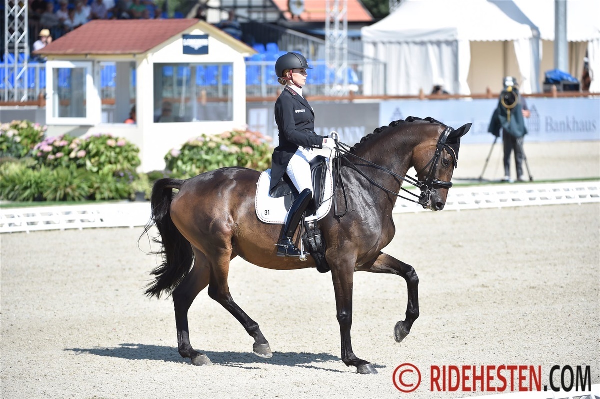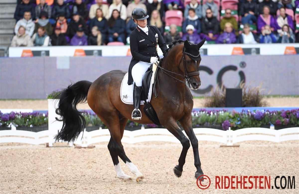 På tredjepladsen kom hollandske Dinja van Liere og hendes tophest Hartsuijker e. Johnson/ Scandic. Ekvipagen leverede også et flot program med karakterer, der var en anelse højere end Nanna Merralds. 75.609% blev det, der sikrede dem en placering på podiet. Om Nanna Merrald og Blue Hors Zepter kan slå dem i morgen, bliver spændende at se.