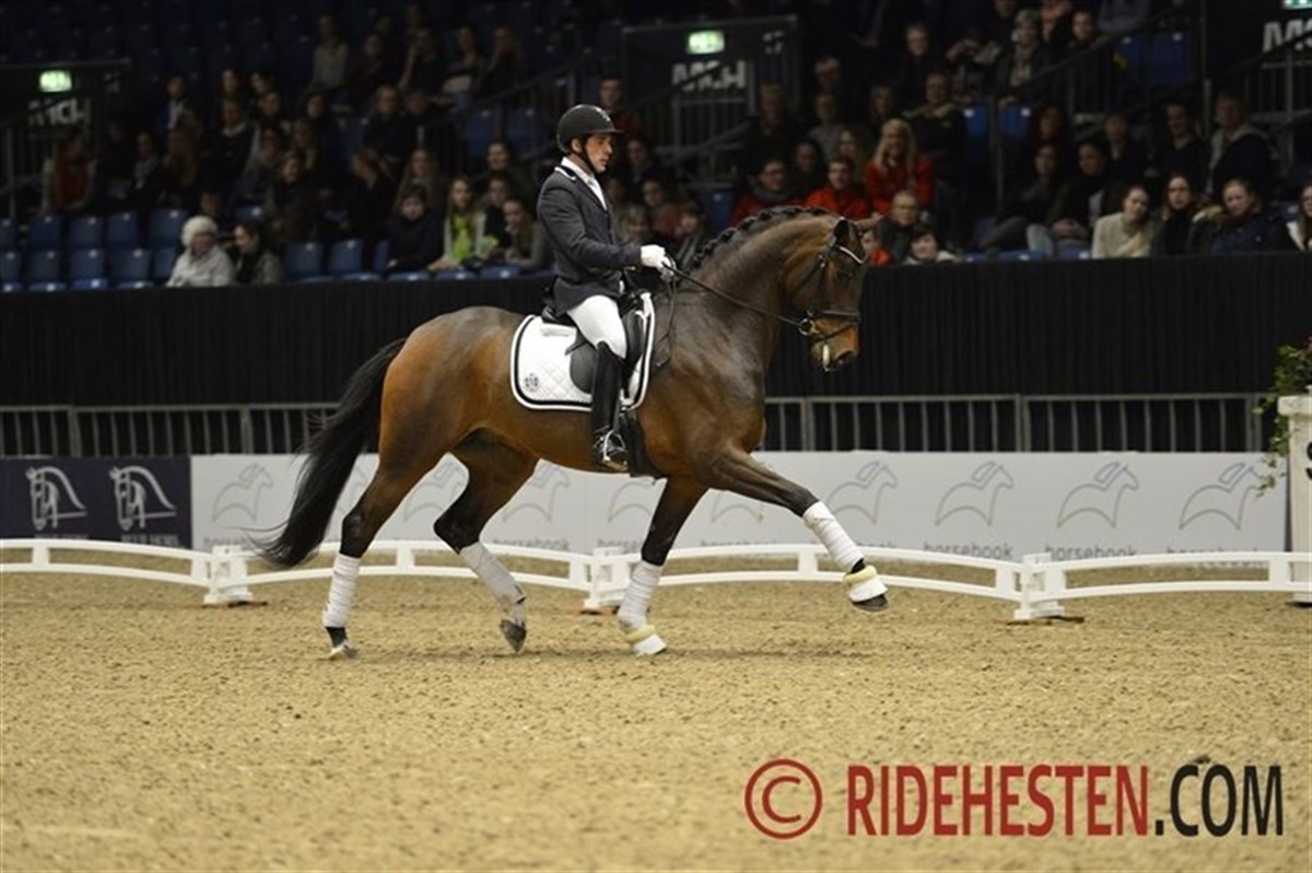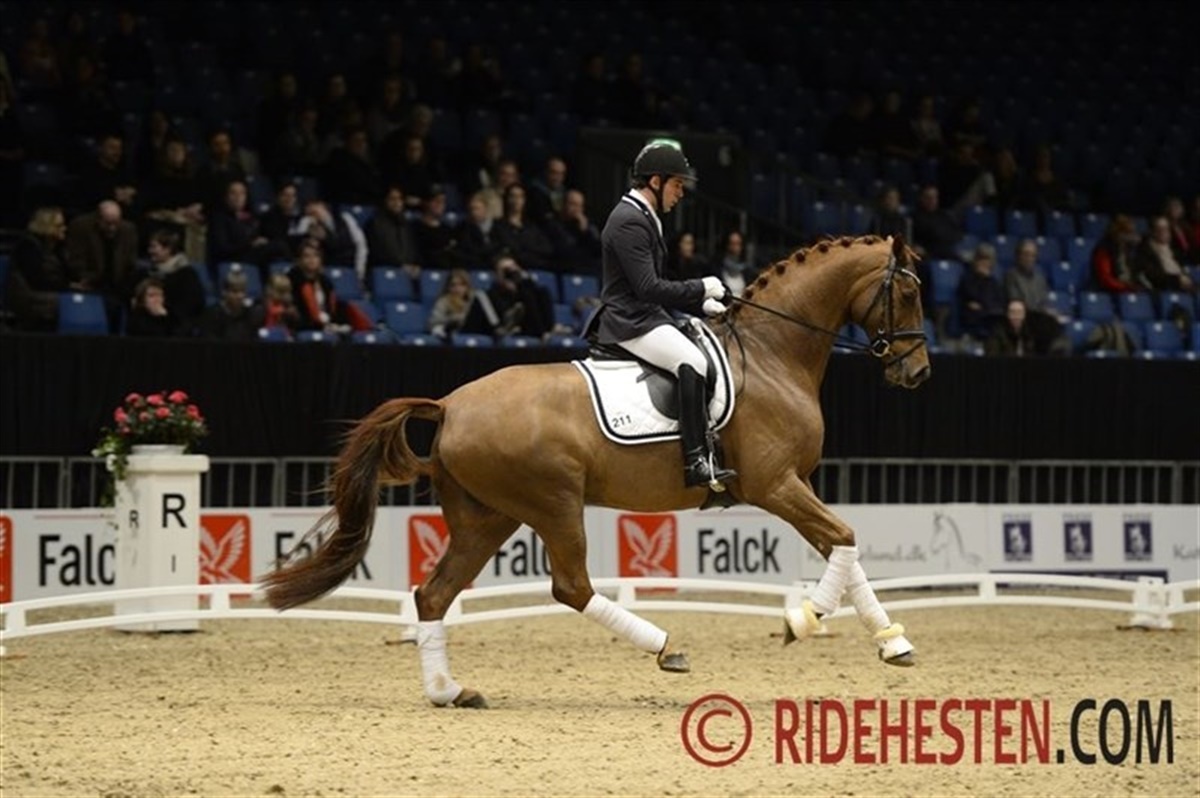Allersidste hest på banen var sølvmedaljehoppen Fiontini e. Fassbinder/Blue Hors Romanov, som er ejet og opdrættet af Hanne Lund og Henrik Hansen, Solrød Strand, og som er blevet fremvist af Severo Jurado Lopez. Fiontini lå i spidsen for championatet efter bedømmelsen under egen rytter, og efter flere gode bedømmelser fra testrytter Charlotte Dujardin var topkampen meget tæt, så spændingen i salen da Charlotte satte sig op på den imponerende hoppe var bestemt mærkbar. Den spænding blev dog hurtigt udløst, da Charlottes første kommentar faldt; – Ok, hende tager jeg også med hjem!
