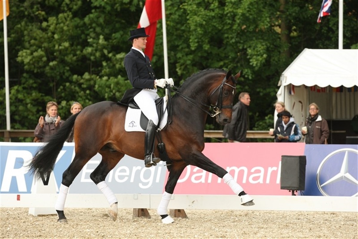 Det internationale dressurstævne i Bernstorffsparken fortsatte her til middag med First Horse Prix St. Georges med 23 startende ryttere. Andreas Helgstrand og Famaso lagde afstand til konkurrenterne da de opnåede 73,421%. Det så længe ud til at den danske juniorrytter Nanna Skodborg Merrald kunne holde sin andenplads med 69,4%, men den svenske rytter Pernilla Andre Hokfelt og Wladimir OA kilede sig ind mellem de to danskere. De 15 bedste ryttere fra dagens konkurrence mødes igen på søndag, og foruden de nævnte har følgende danske ekvipager kvalificeret sig: Sune Hansen/Blue Hors Rush Hour, Sandra Skodborg Merrald/Weltliebe, Maria Anita Andersen/Loxana, Joachim Chr. Thomsen/Figaro Flower, Michæl Søgaard/Matrix, Allan Skov/Volstrupgaards Casiopeia og Rune Willum/Belissimo.
