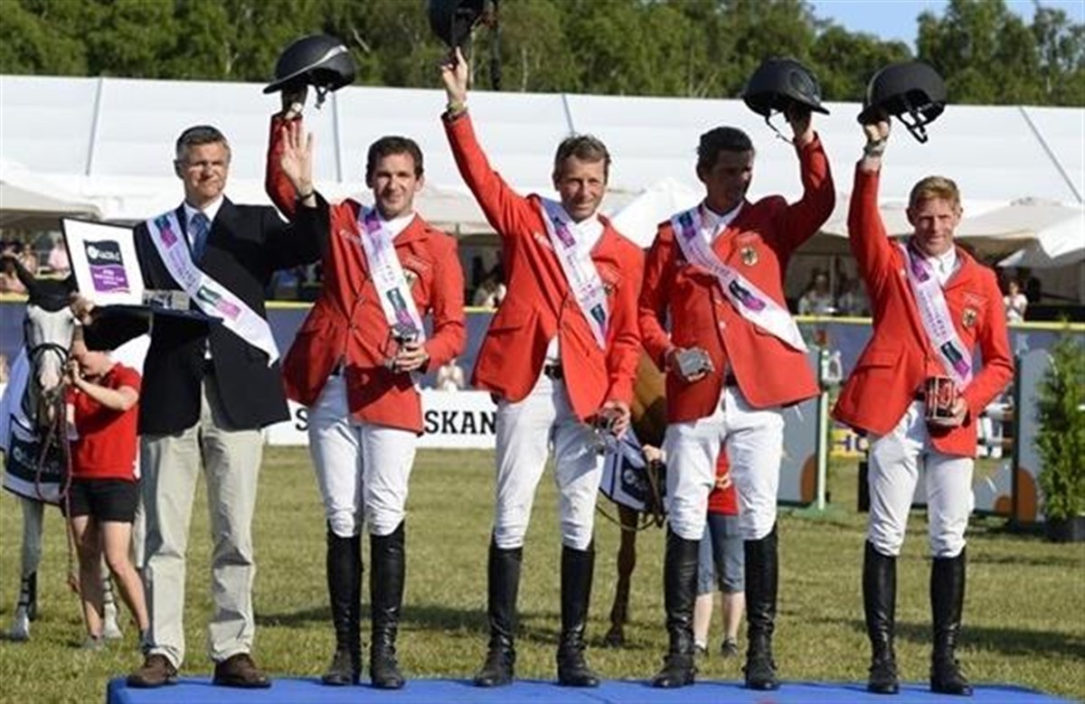 Tyskernes sejr i Falsterbo kom i hus uden holdets fjerderytter Phillipp Weishaupt behøvede at hente sin hest Monte Bellini ud af stalden. Marcus Ehning/Plot Blue var dobbelt nul, Rolf Moormann/Acorte red med 0 og 4 fejl mens Carsten-Otto Nagel og Corradina cementerede tyskernes overlegenhed med en dobbelt 0-runde.