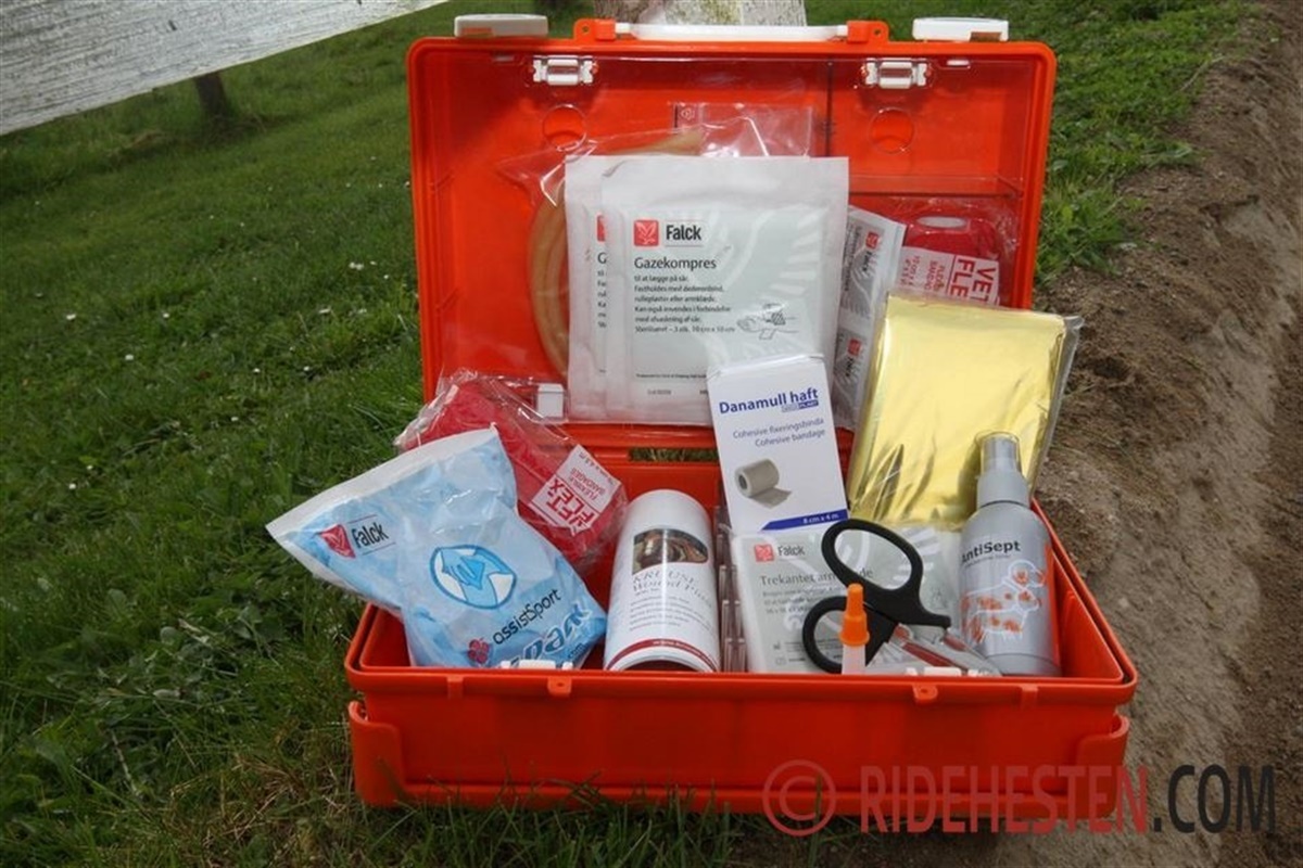 Nødhjælpskufferten fra Falck er god at have i stalden og på stævnepladsen. Her er der hjælpemidler at finde, som kan klare mindre skader samt bruges til at yde førstehjælp, inden dyrlægen tilkaldes, eller rytteren køres til skadestue eller læge.