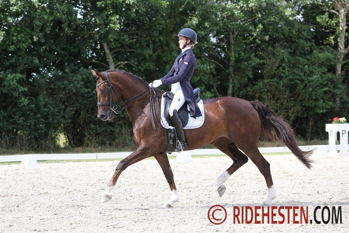 I går blev juniorenes indledende klasse til mesterskabet afholdt. Der var 36 ekvipager til start, men allerede her lagde Sophia Boje Obel Jørgensen og Brilliant (e. Bretton Woods / Diamond Hit, opdr. Gestüet Lewitz) sig I spidsen med imponerende 76,433 % I MB1. I dag red Sophia på banen som den sidste, men hun holdt hovedet koldt hele vejen, og ekvipagens elegante kür med musik fra bl.a. Zoe Wees og Rihanna, blev belønnet med 79,050 % af de fem dommere. Hermed blev den samlede procentsats 155,483 % over de to dage og med mere end 6 % til nærmeste konkurrent blev det til en sikker sejer.