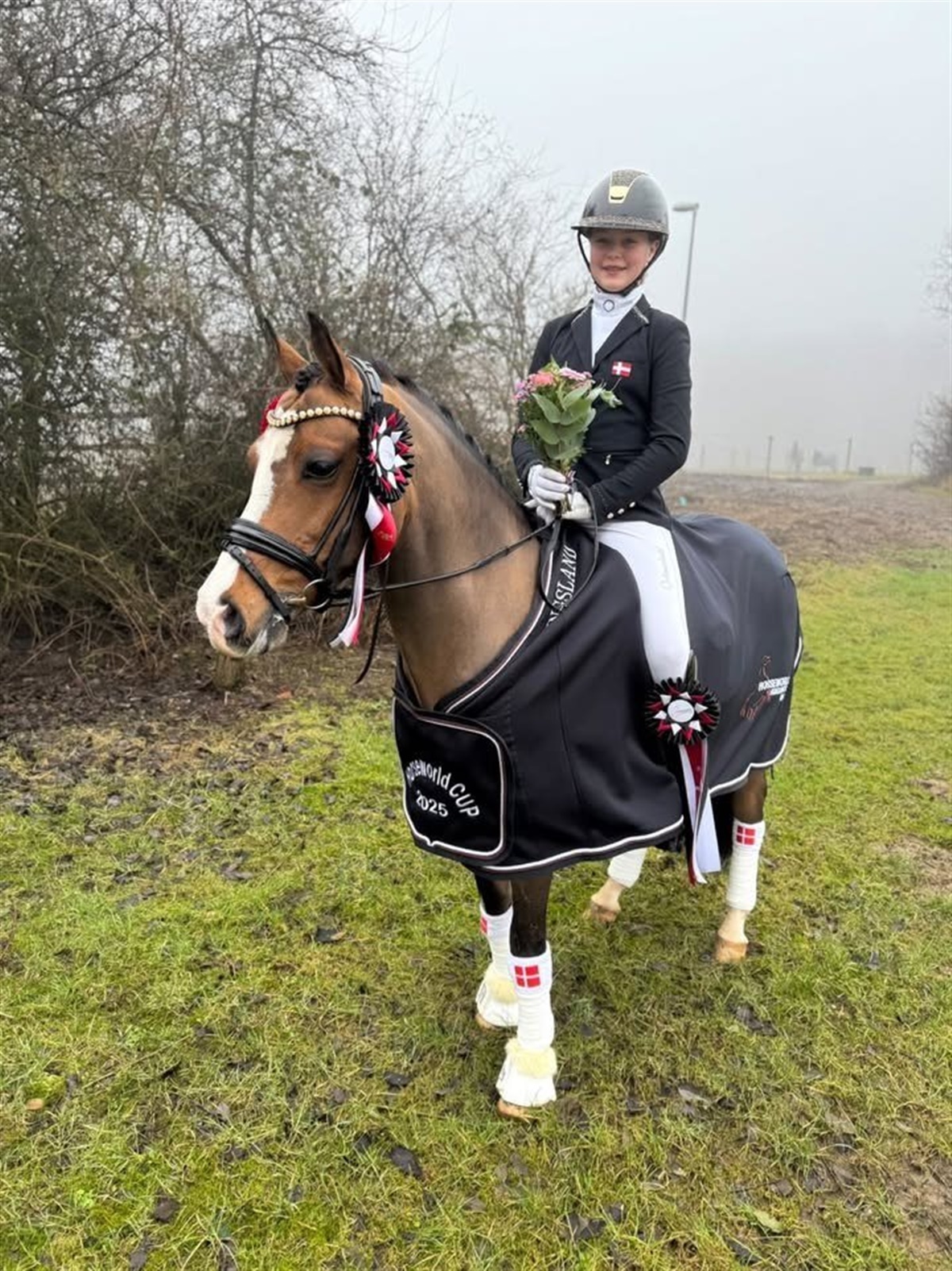 Agnes Ørnskov Beier havde tre ponyer med til weekendens stævne i Vejle; to af dem er kat. II ponyer, og på hhv. Timms My Fritz e. Grenzhoehes My Fireball/ Orchard's D'Avaranches og Strandgaards Mangold e. FS Mr. Right/ FS Champion De Luxe var Agnes suveræn. Med en kür vurderet til hele 77,583% på den førstnævnte af ponyerne kunne ingen komme forbi Agnes, der vandt Horseworld Cup kat. II med en samlet score på 220,173%. Også på sejrskamlens andet trin stod Agnes, som fik i alt 214,818% på den gyldne pony Mangold.