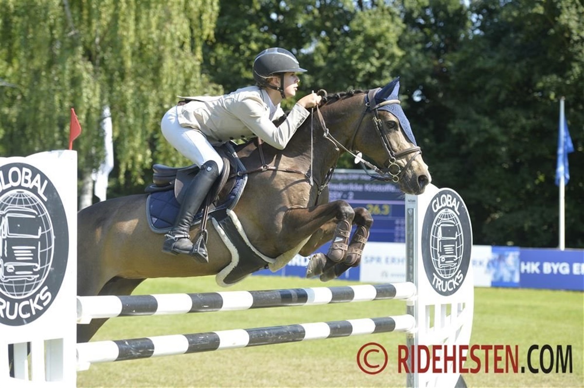 Det var det ikke fordi sidste rytter i omspringningen, Silje Frederikke Kristoffersen med Bassy, hun leverede et utroligt stærkt omspringningsridt. Hun red i et højt grundtempo, og så leverede hun nogle utroligt skarpe vendinger, og dermed red hun i må 1,5 sekund hurtigere end Karoline, og så var sejren sikret.